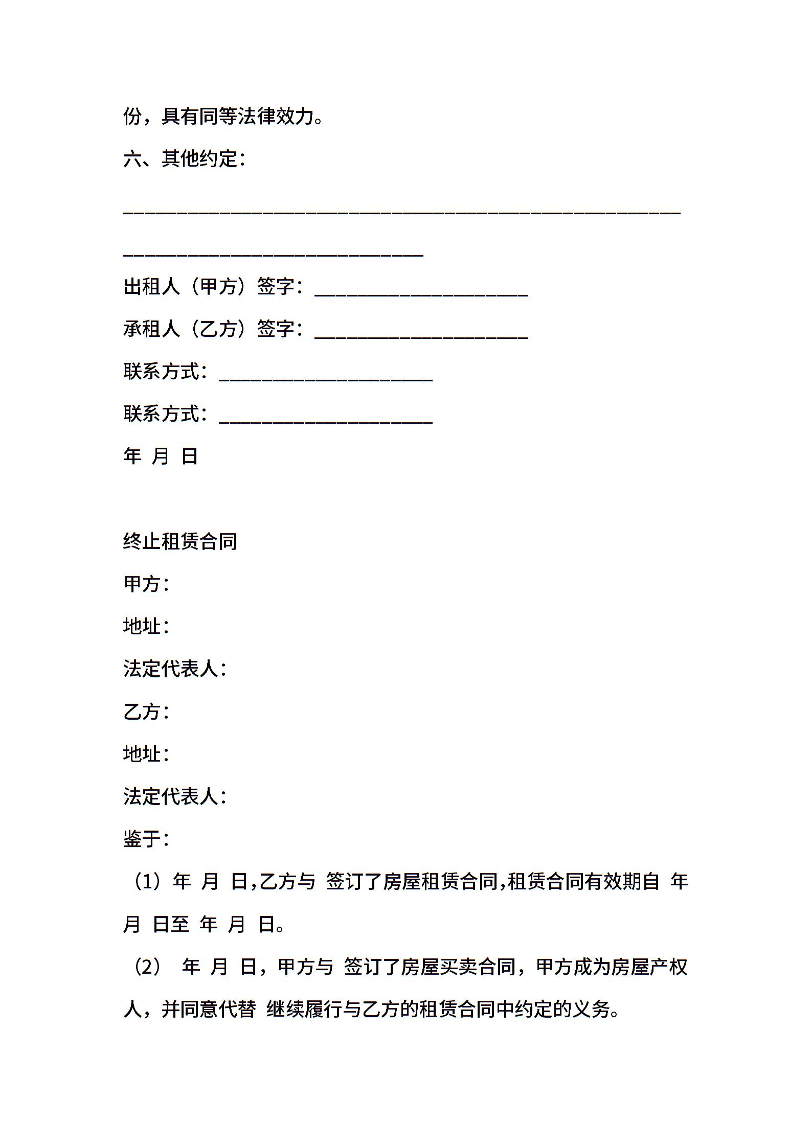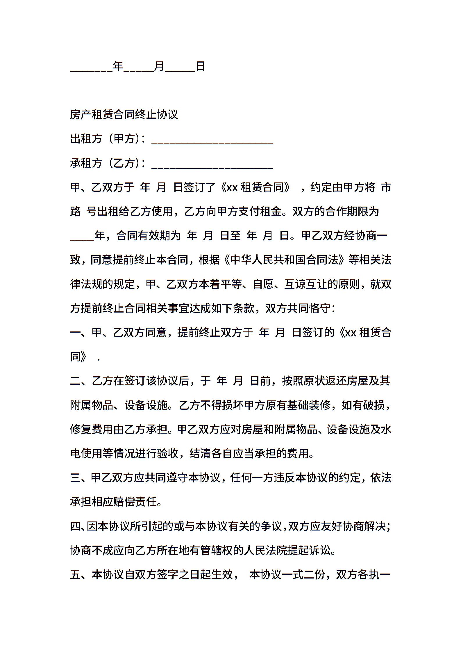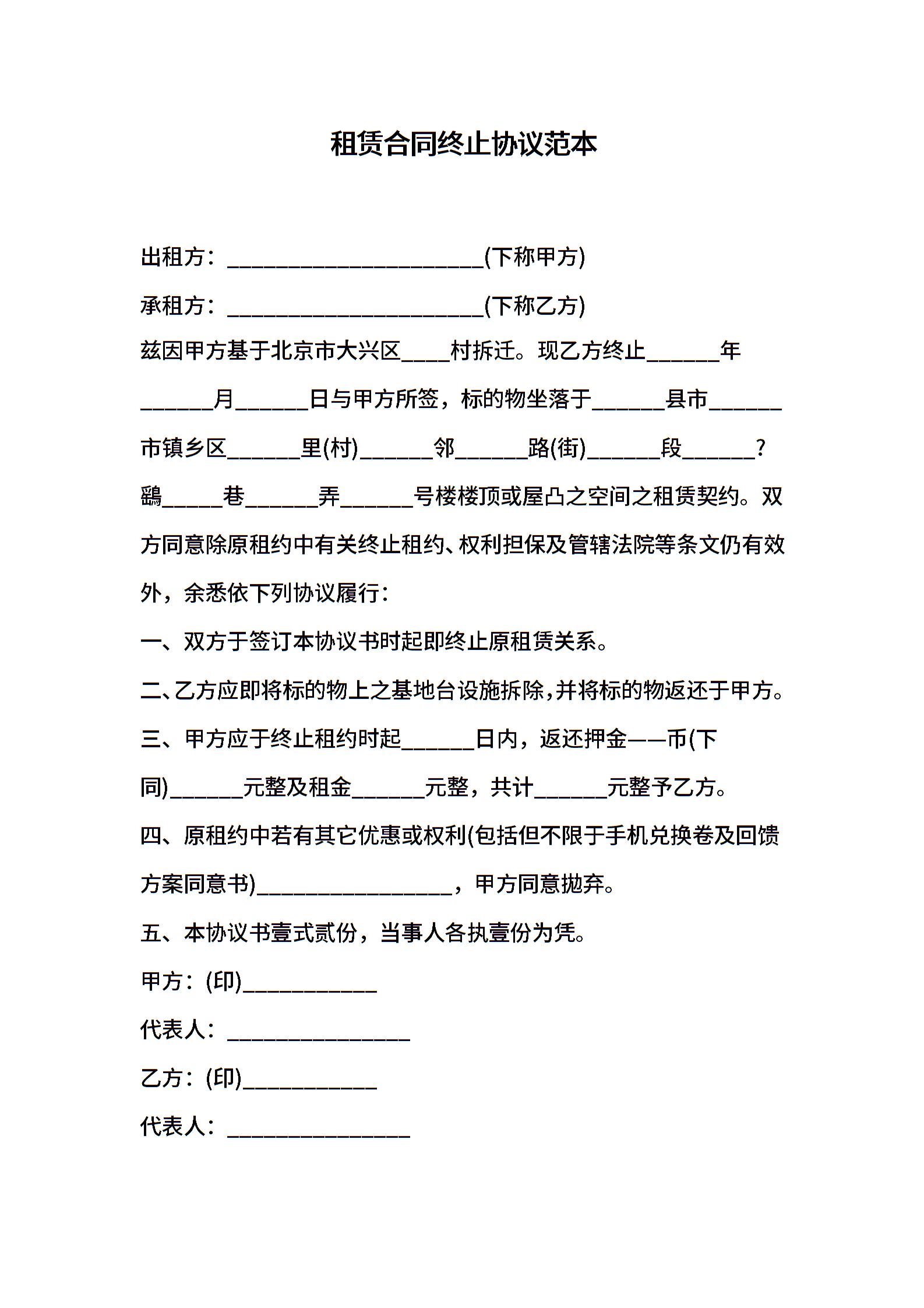 租赁合同终止协议范本