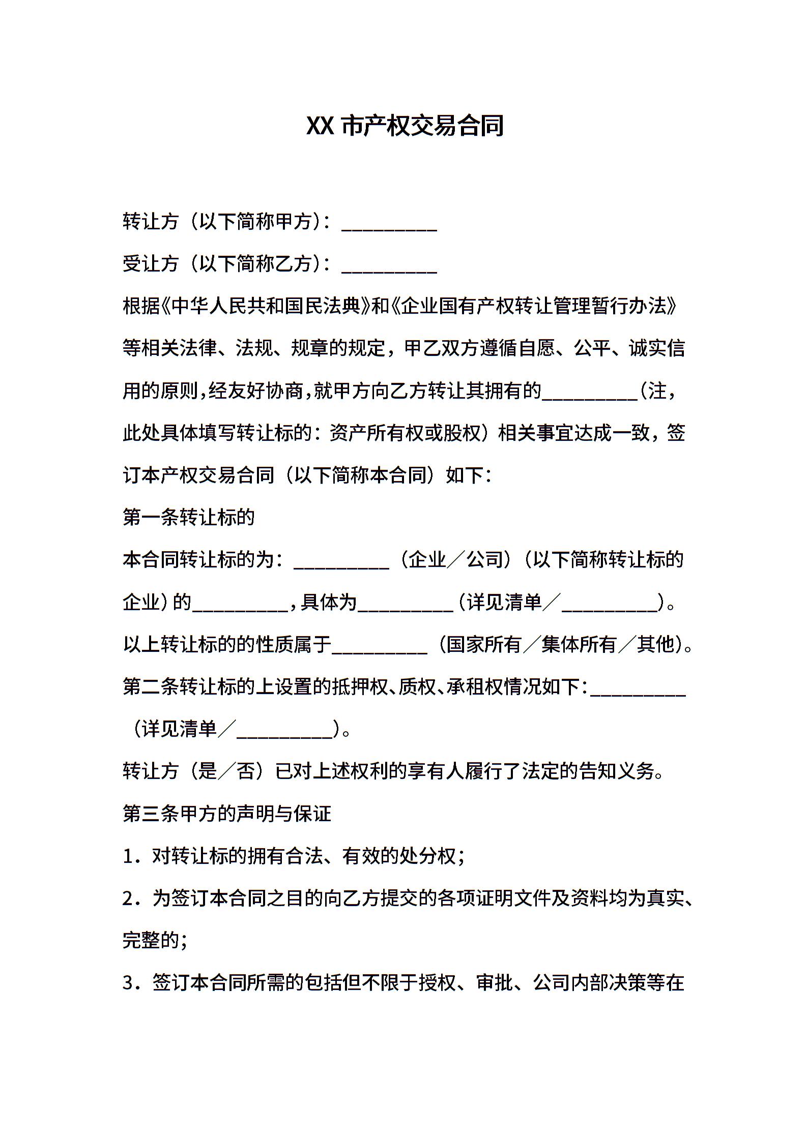 XX市产权交易合同