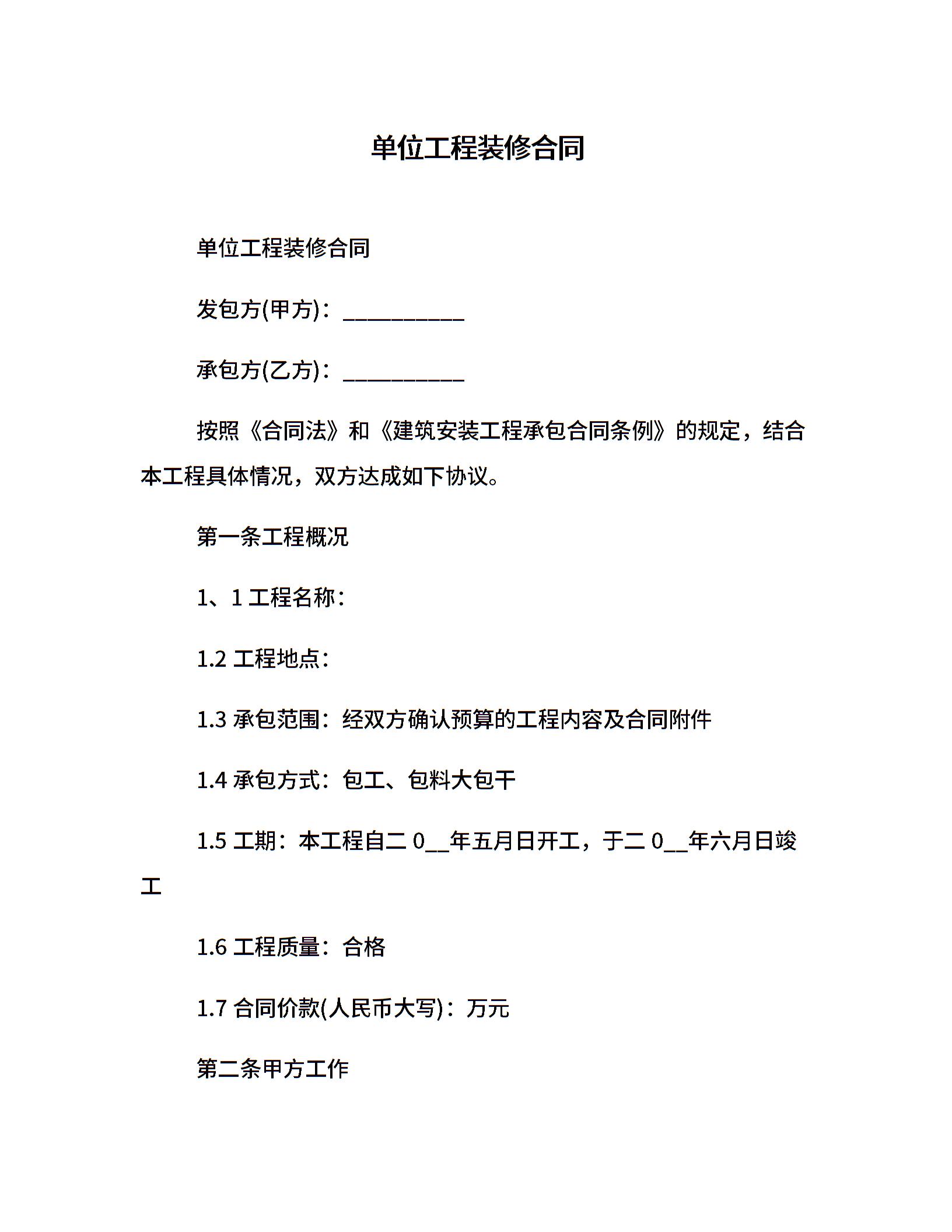 单位工程装修合同