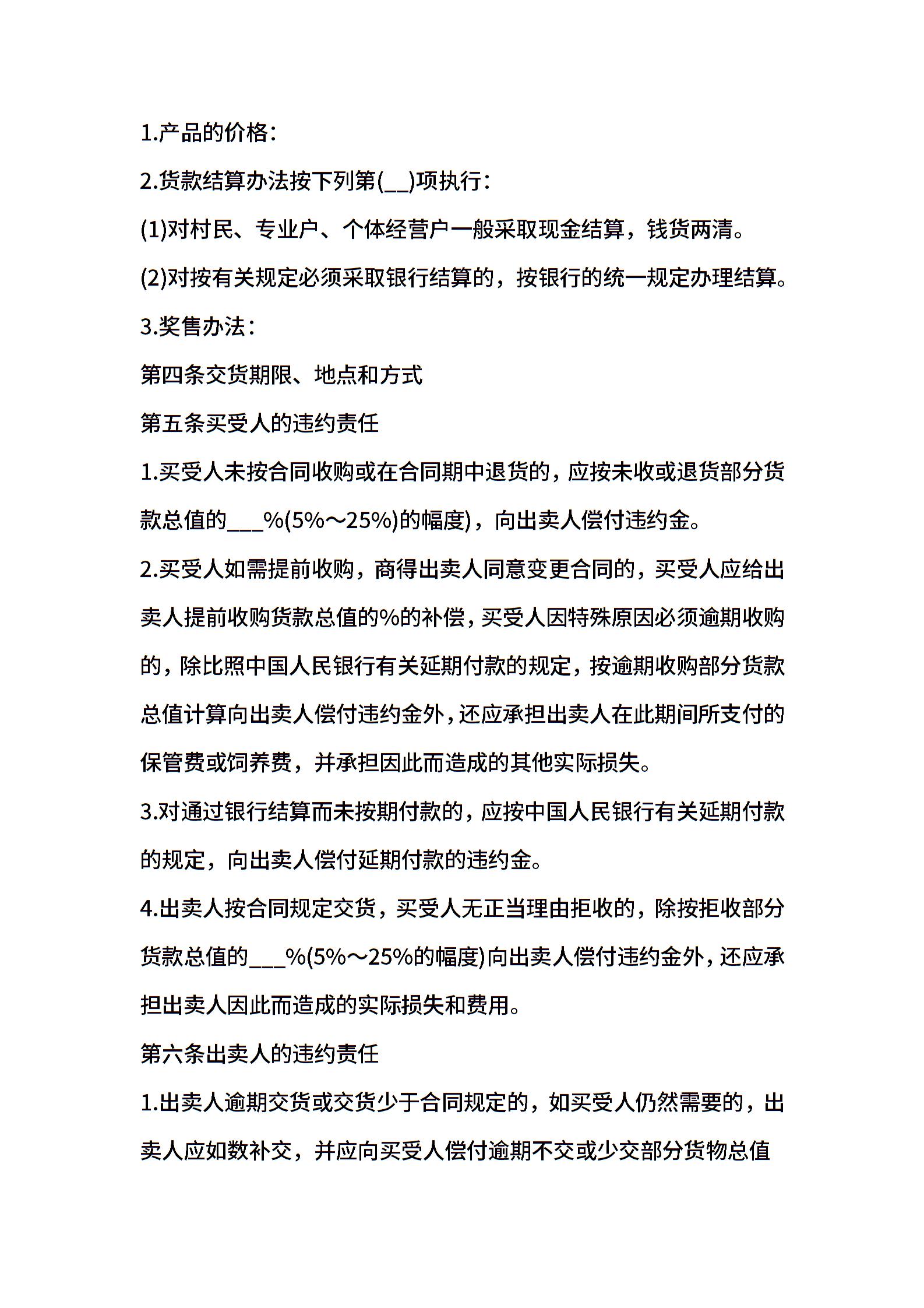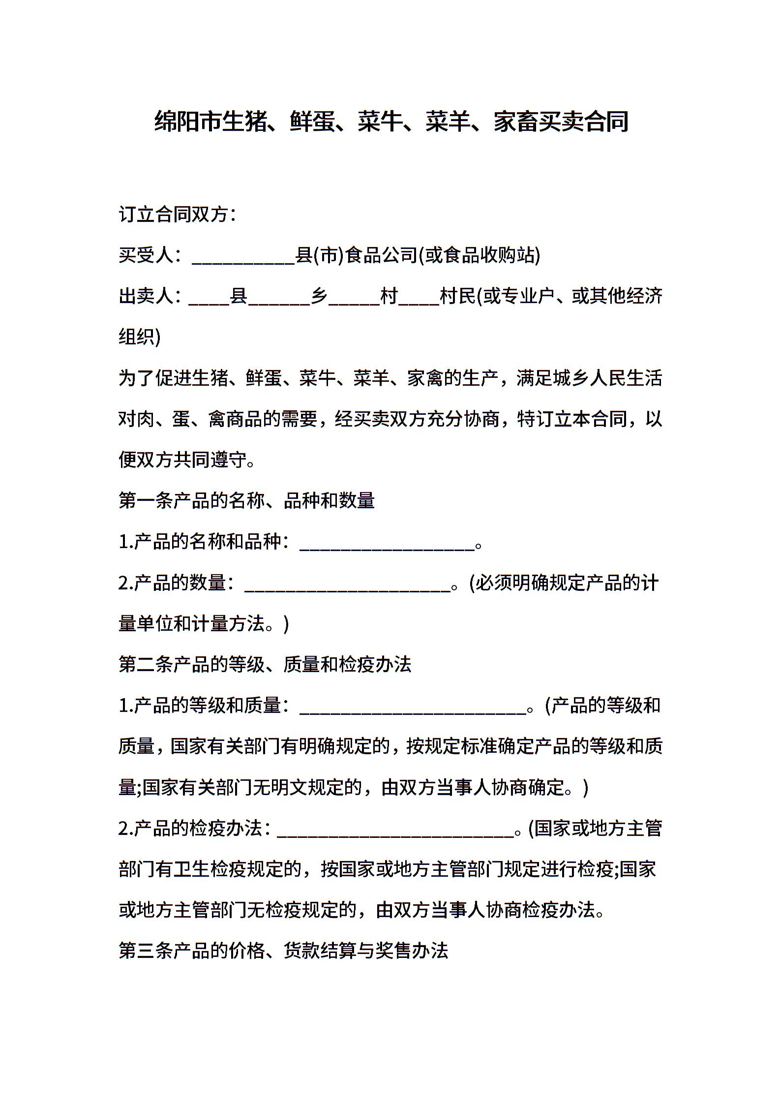 绵阳市生猪、鲜蛋、菜牛、菜羊、家畜买卖合同
