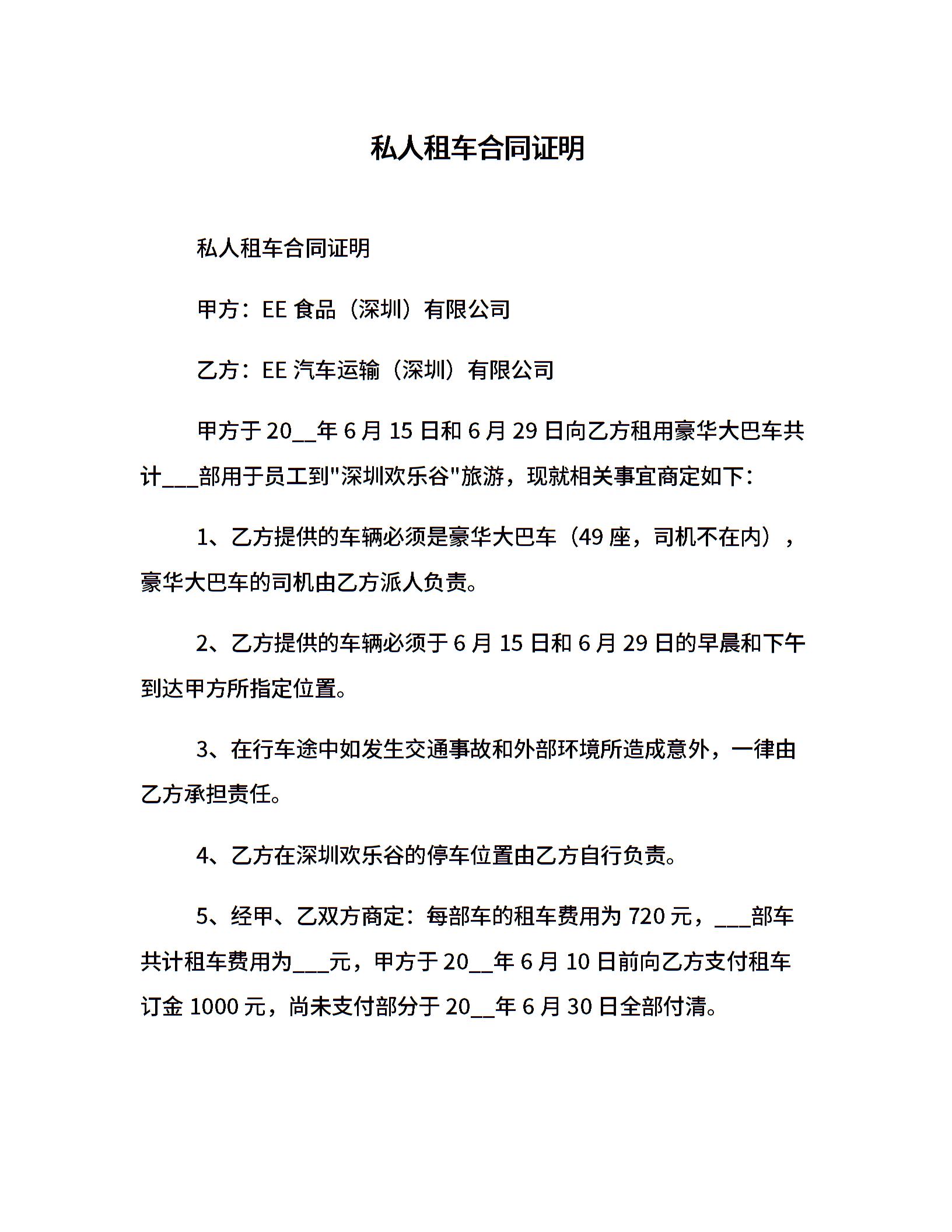 私人租车合同证明