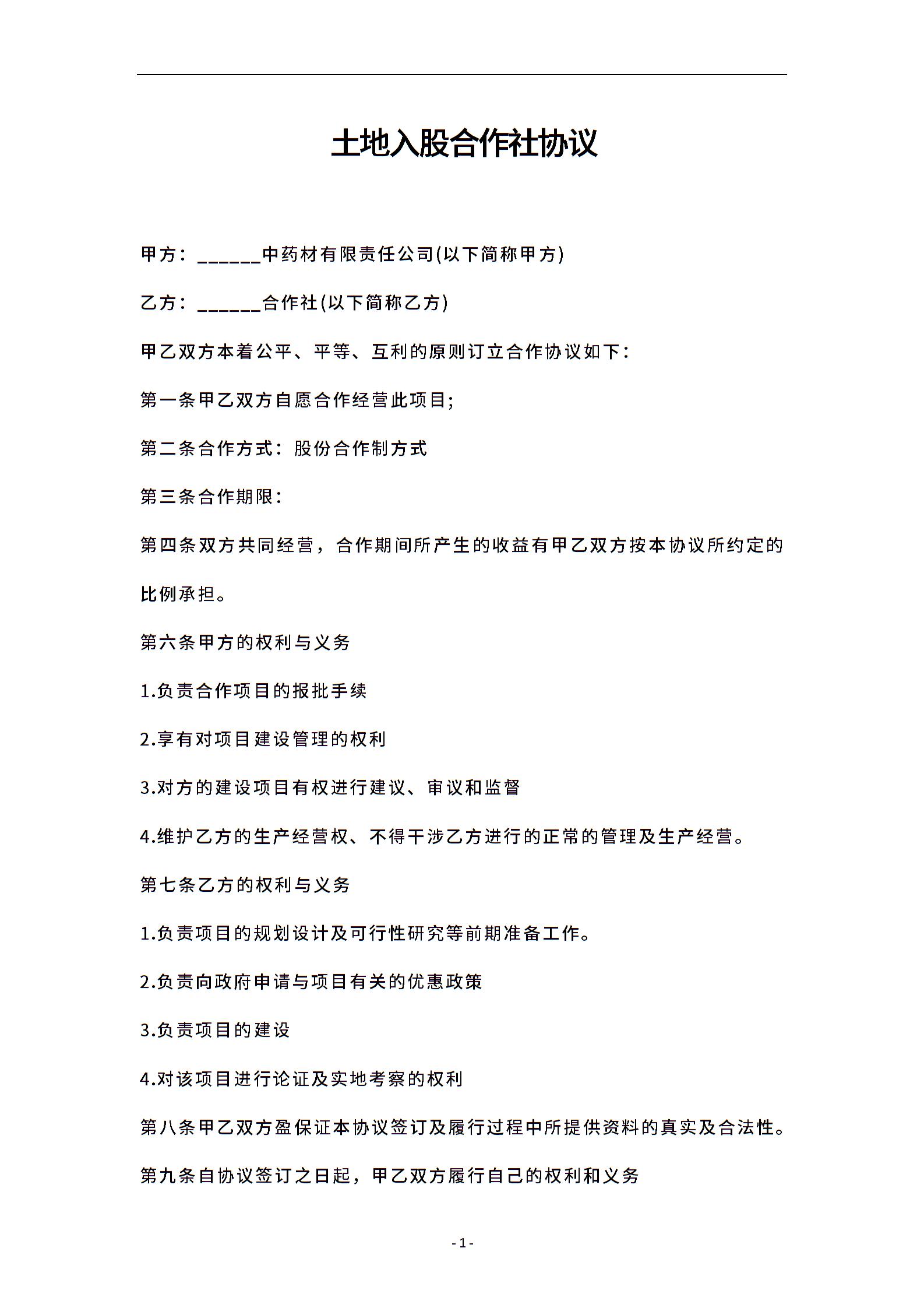 土地入股合作社协议