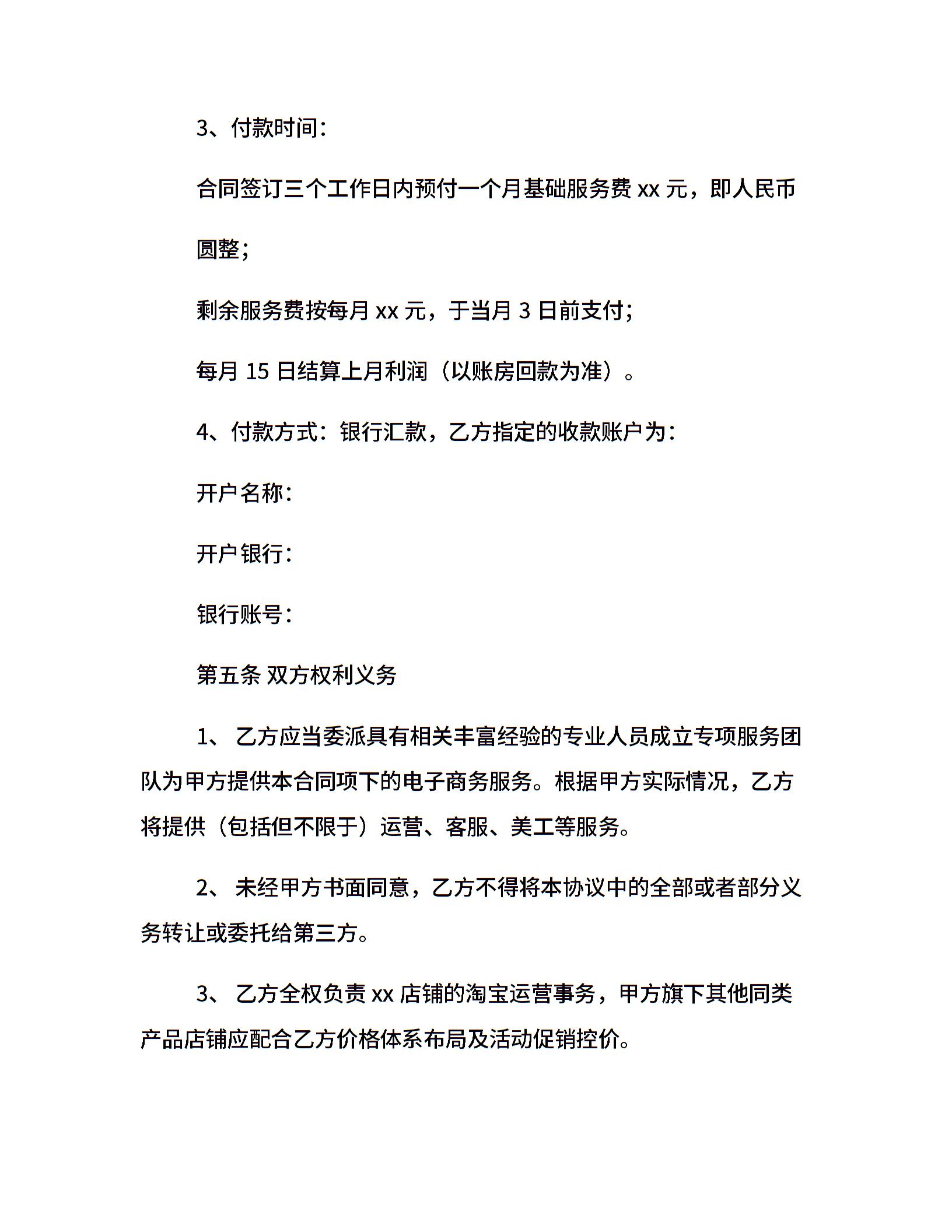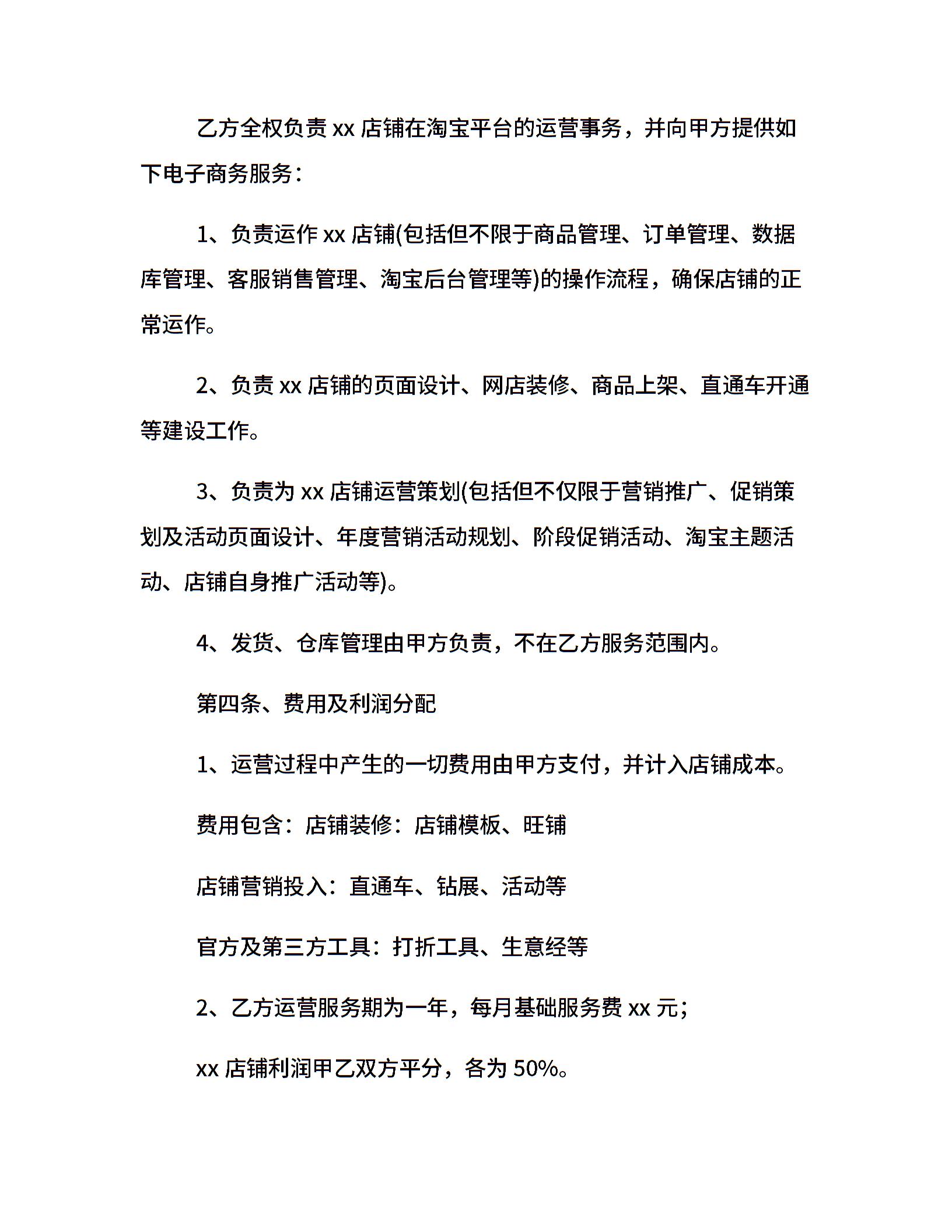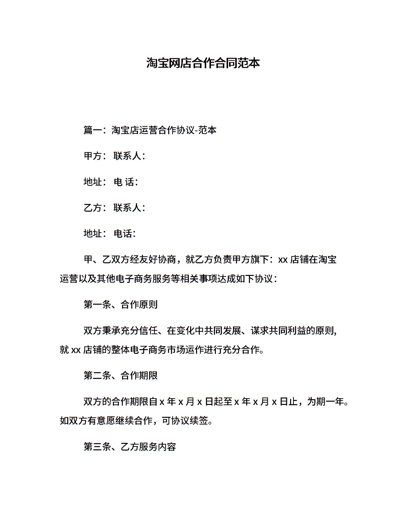淘宝网店合作合同范本