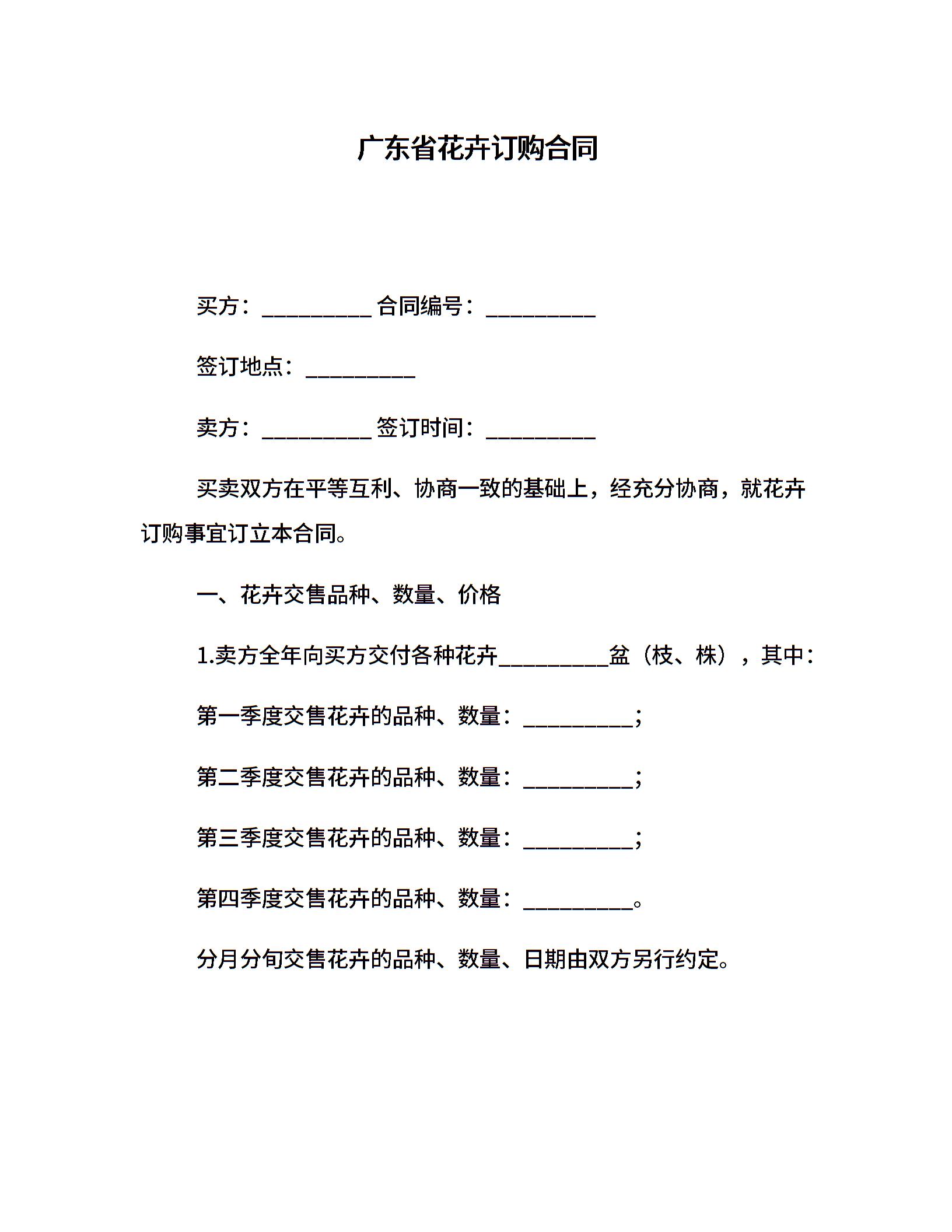 广东省花卉订购合同