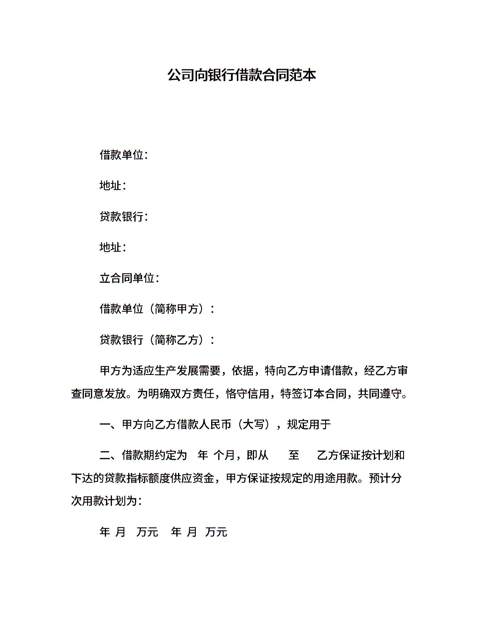 公司向银行借款合同范本
