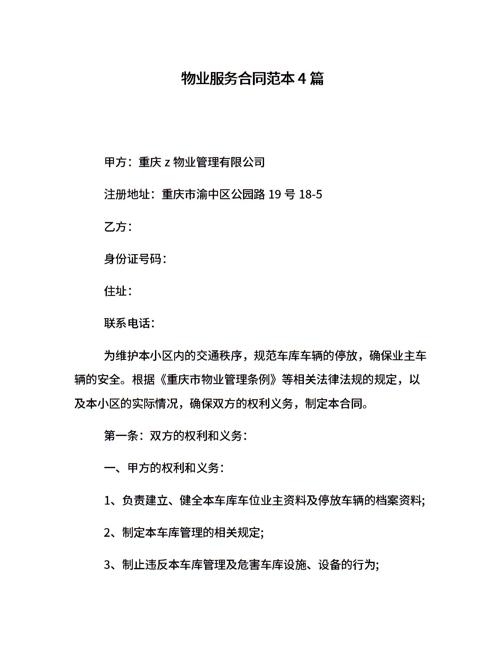 物业服务合同范本4篇