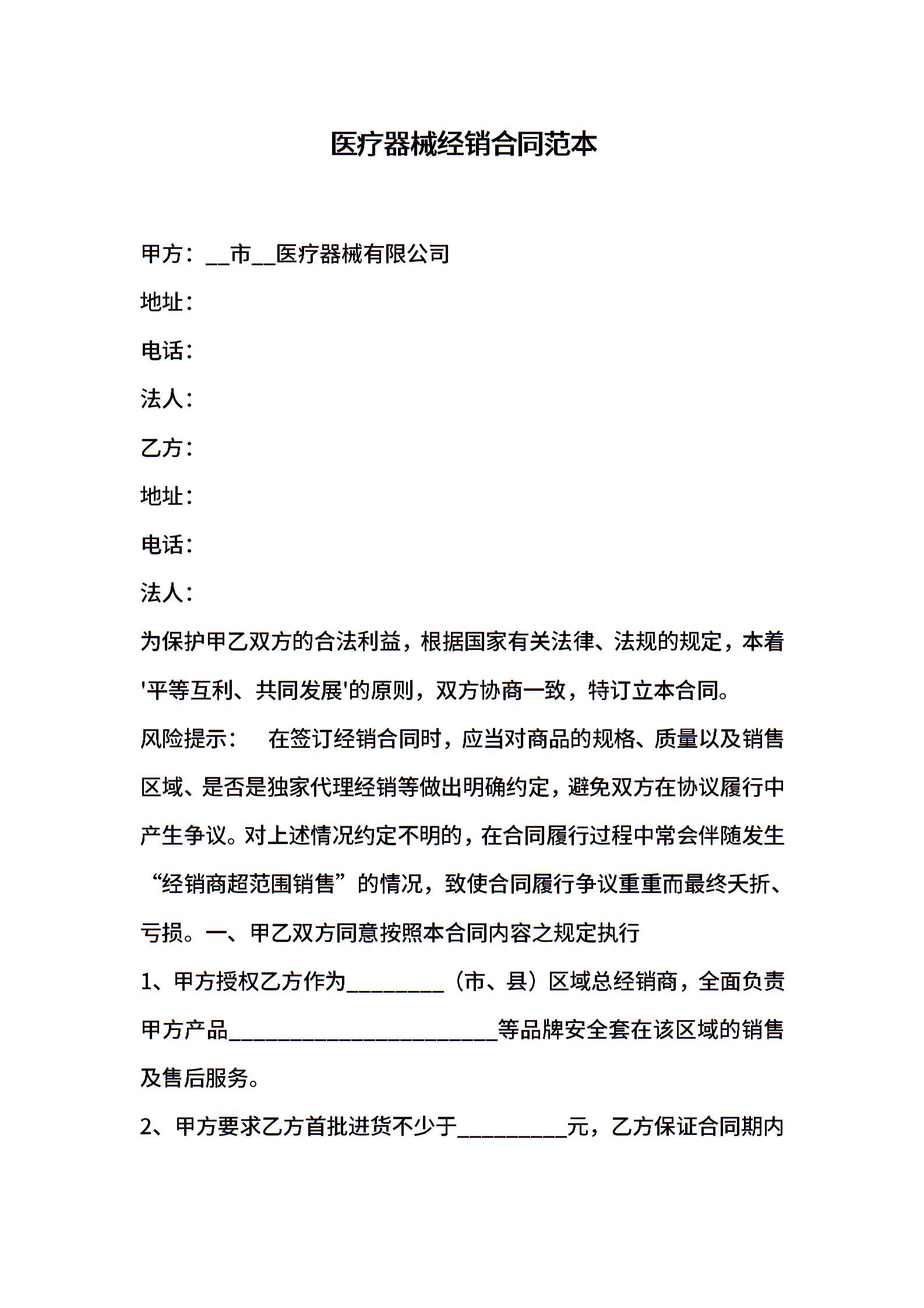 医疗器械经销合同范本