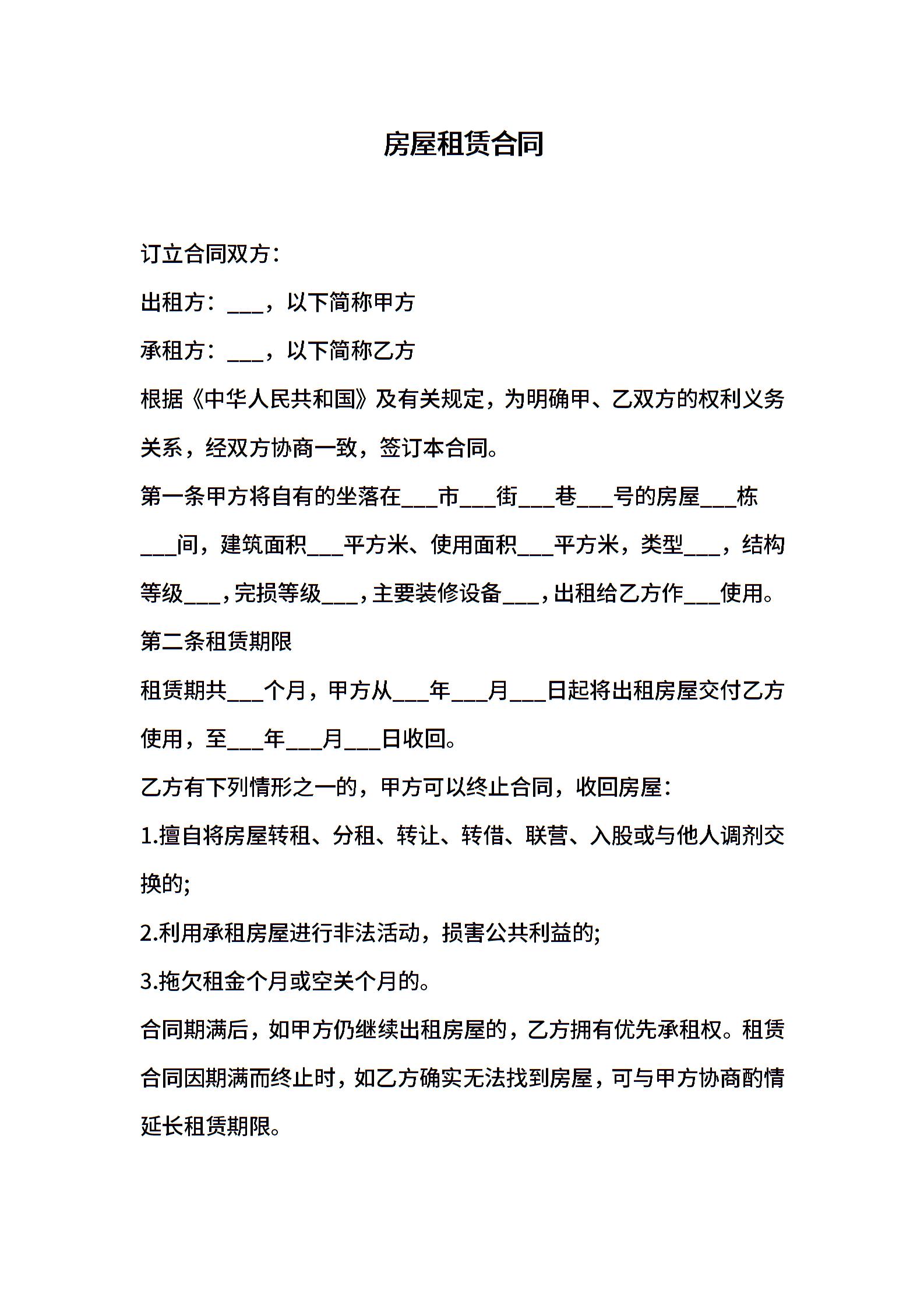房屋租赁合同协议书