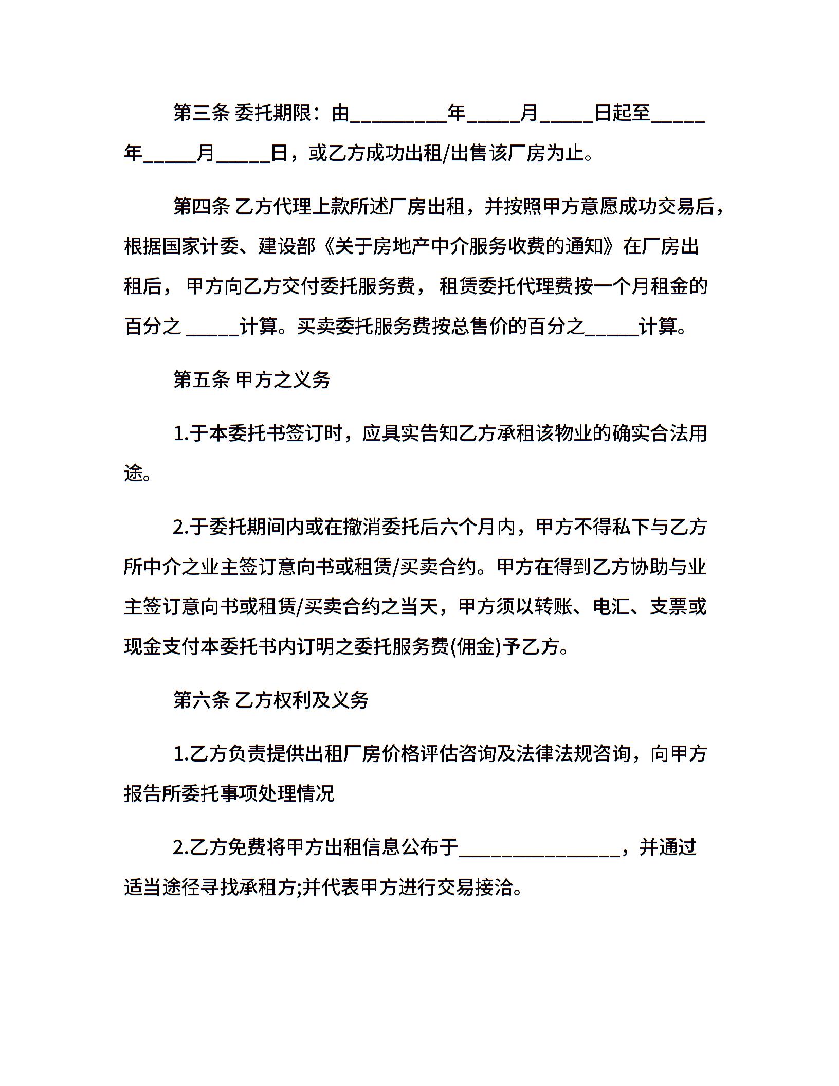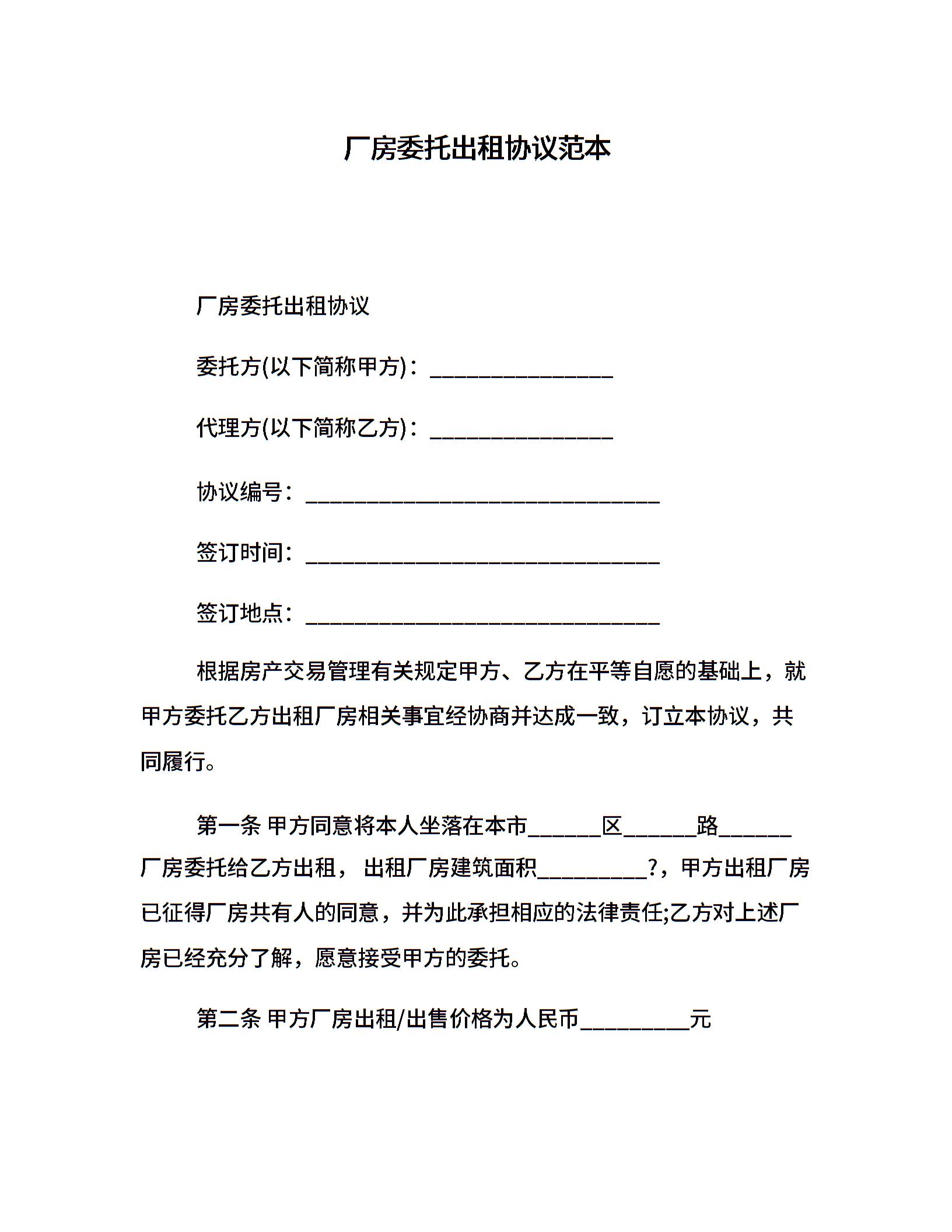 厂房委托出租协议范本