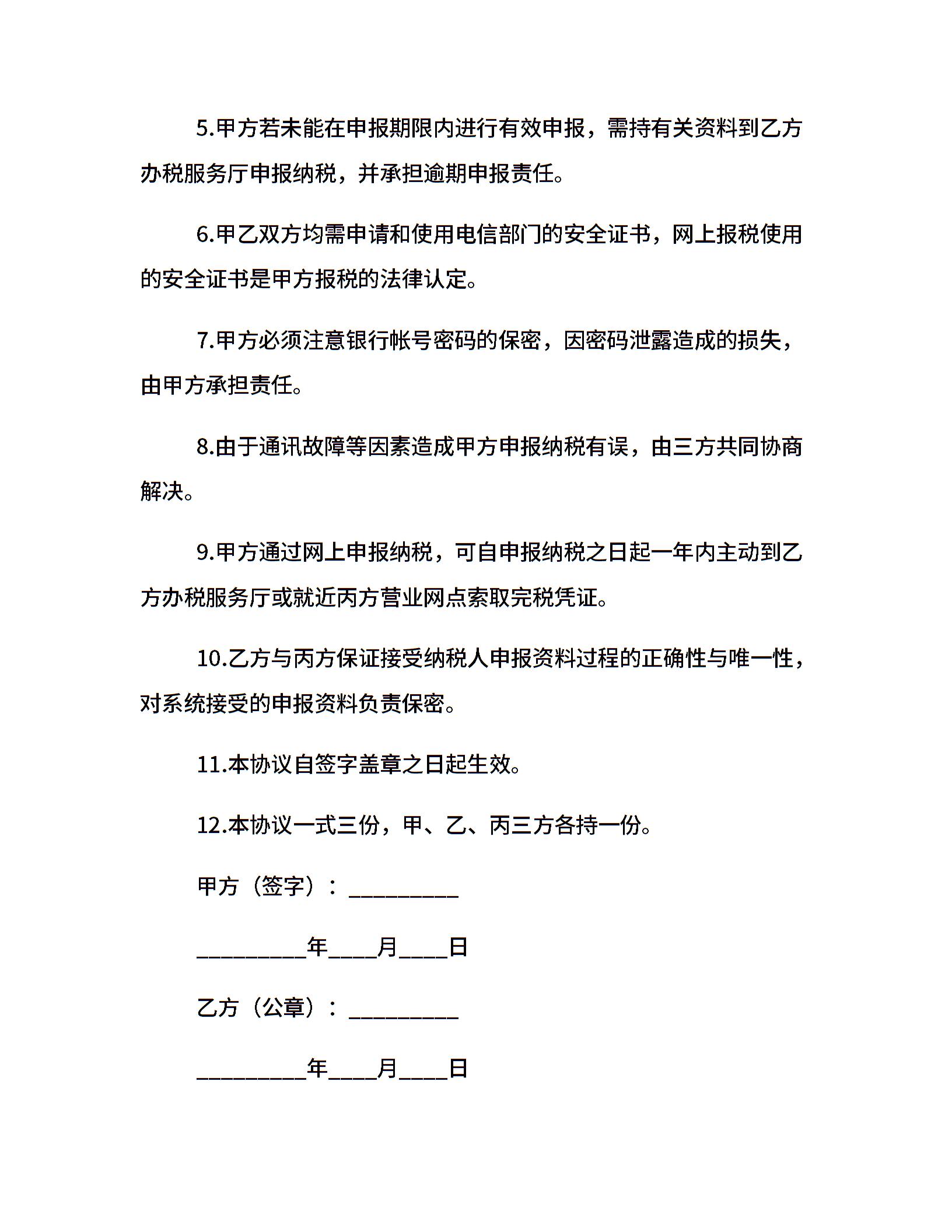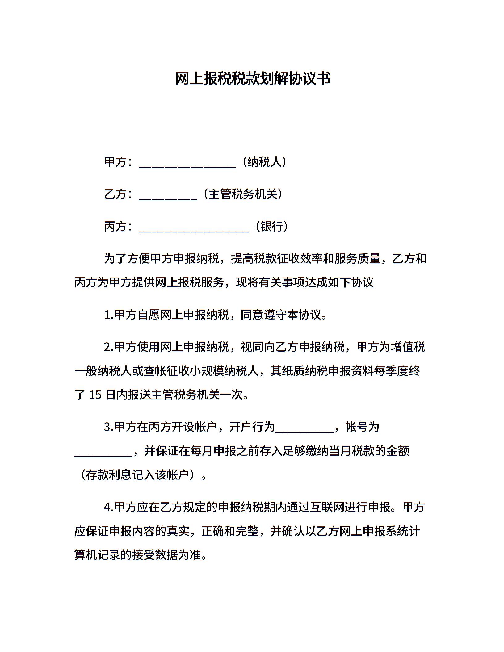 网上报税税款划解协议书