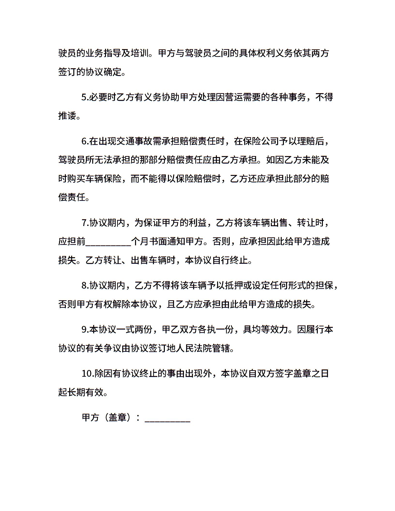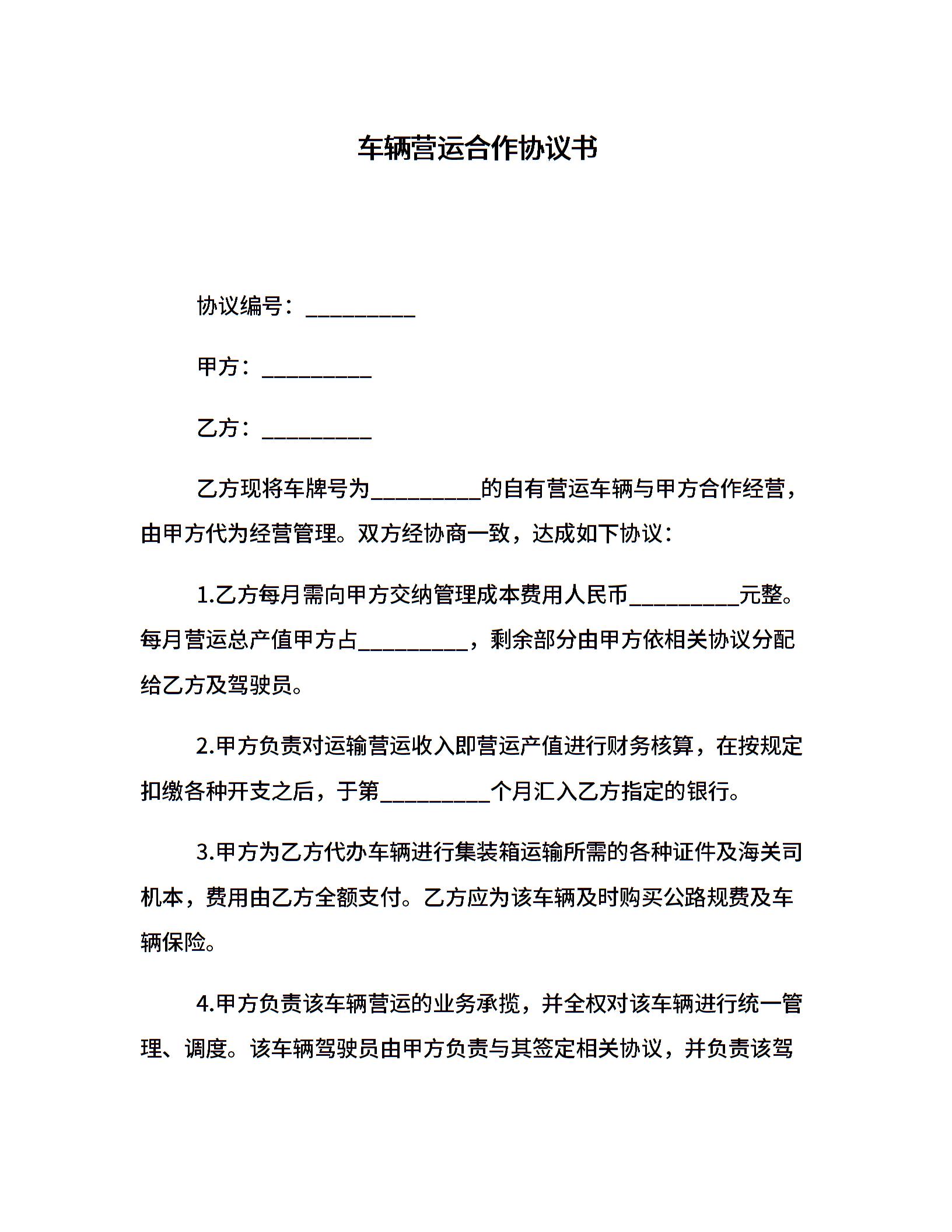 车辆营运合作协议书