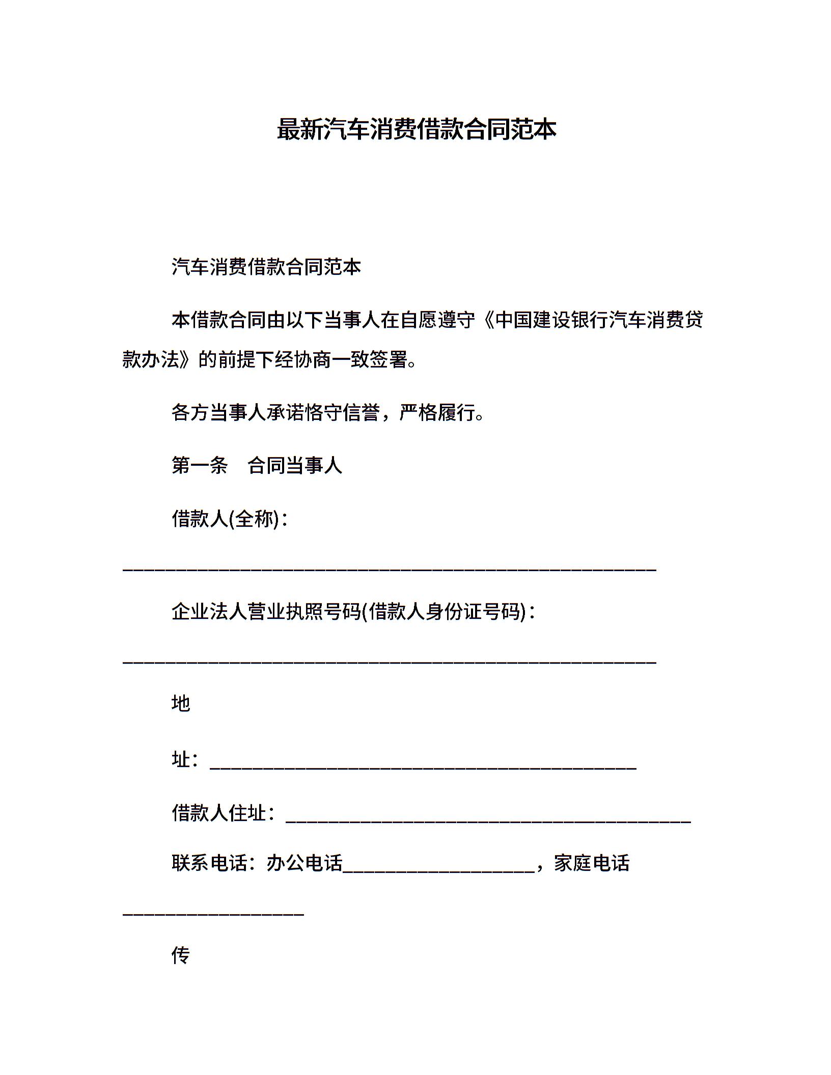 最新汽车消费借款合同范本