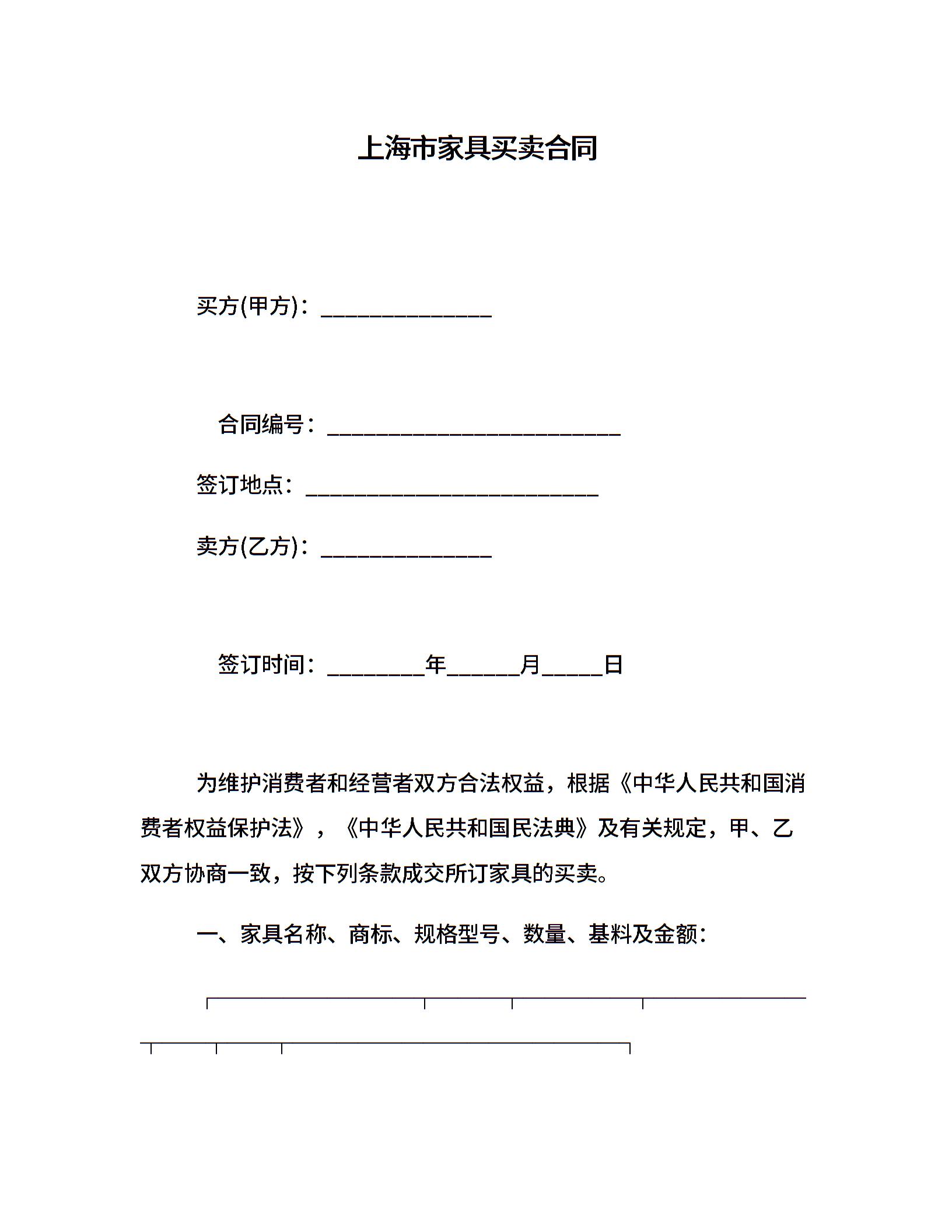 上海市家具买卖合同
