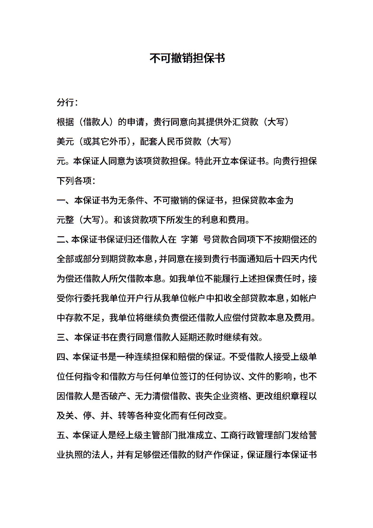 不可撤销担保书