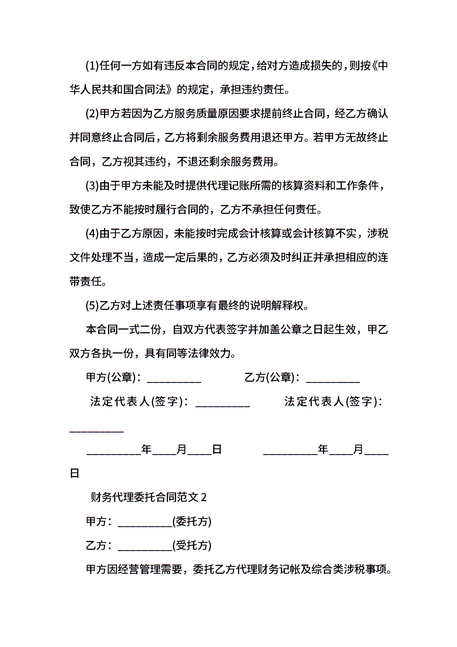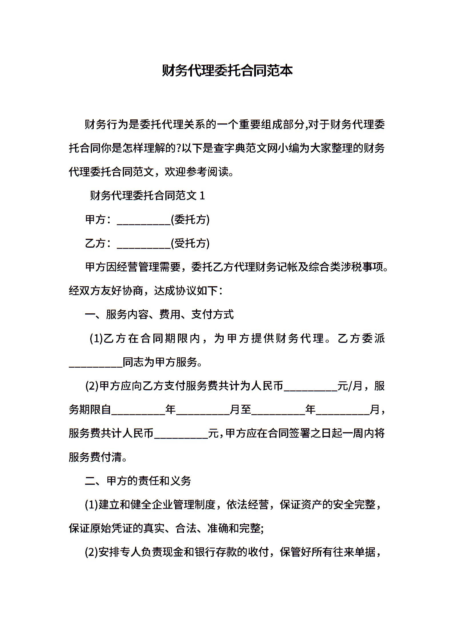 财务代理委托合同范本