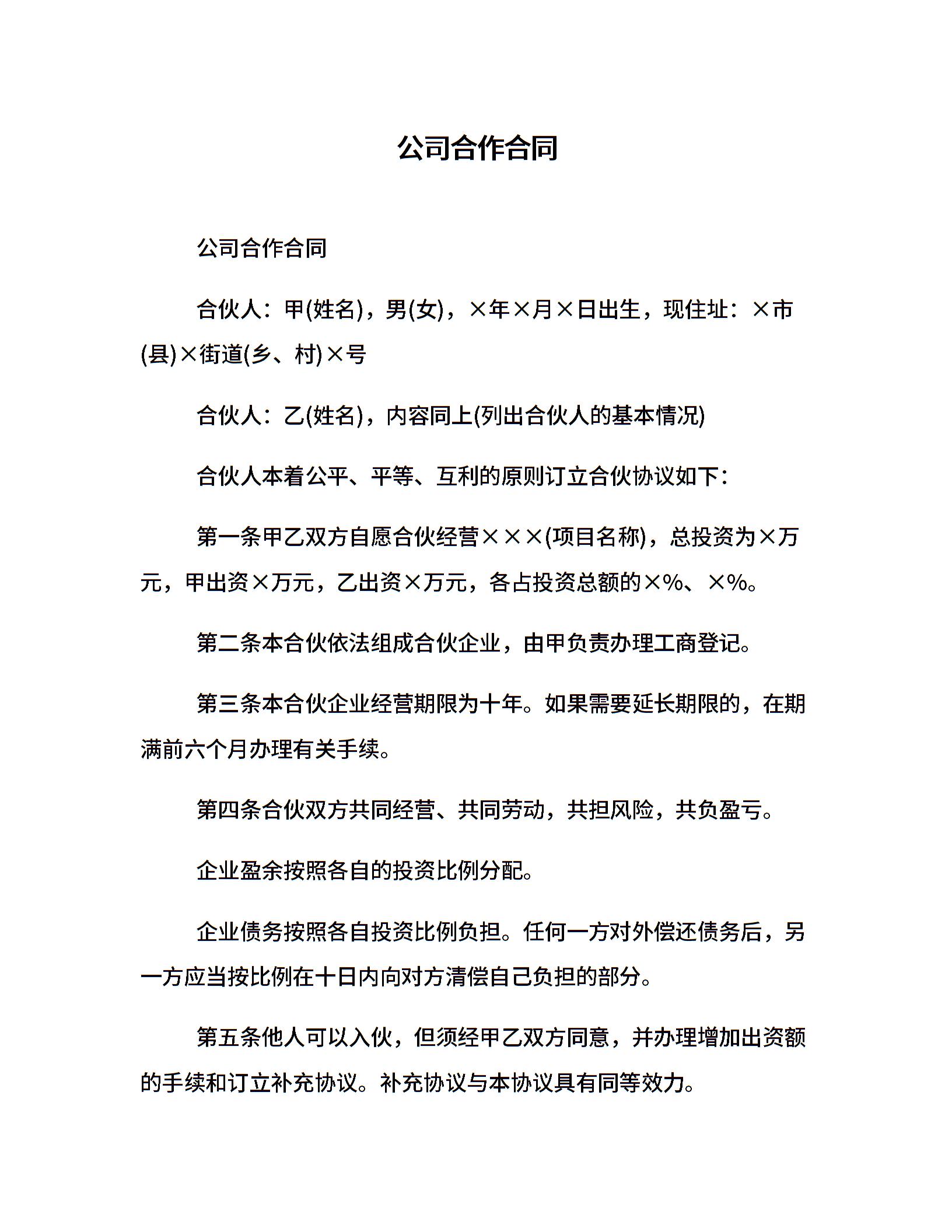 公司合作合同