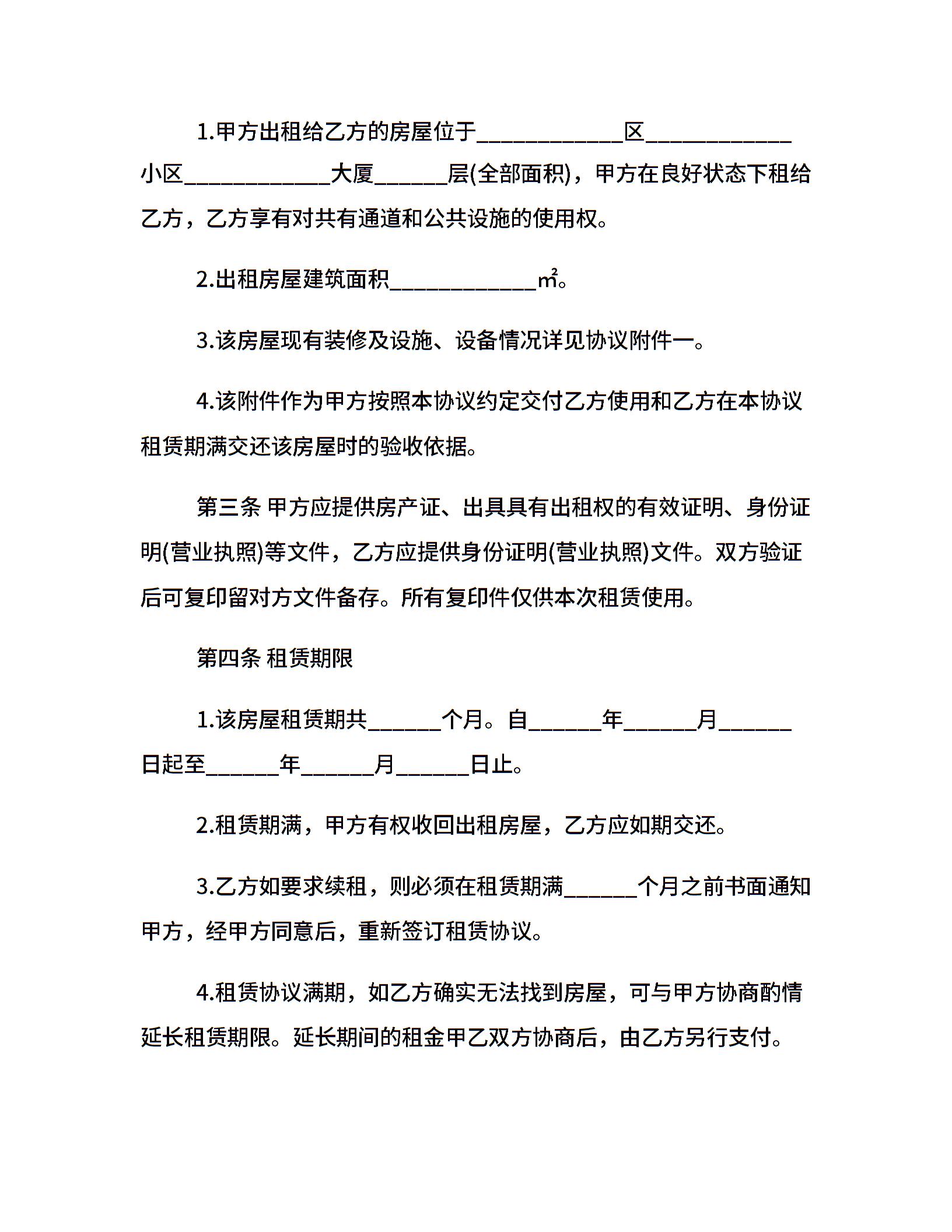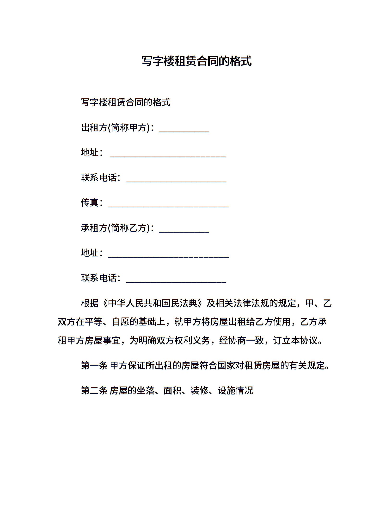 写字楼租赁合同的格式