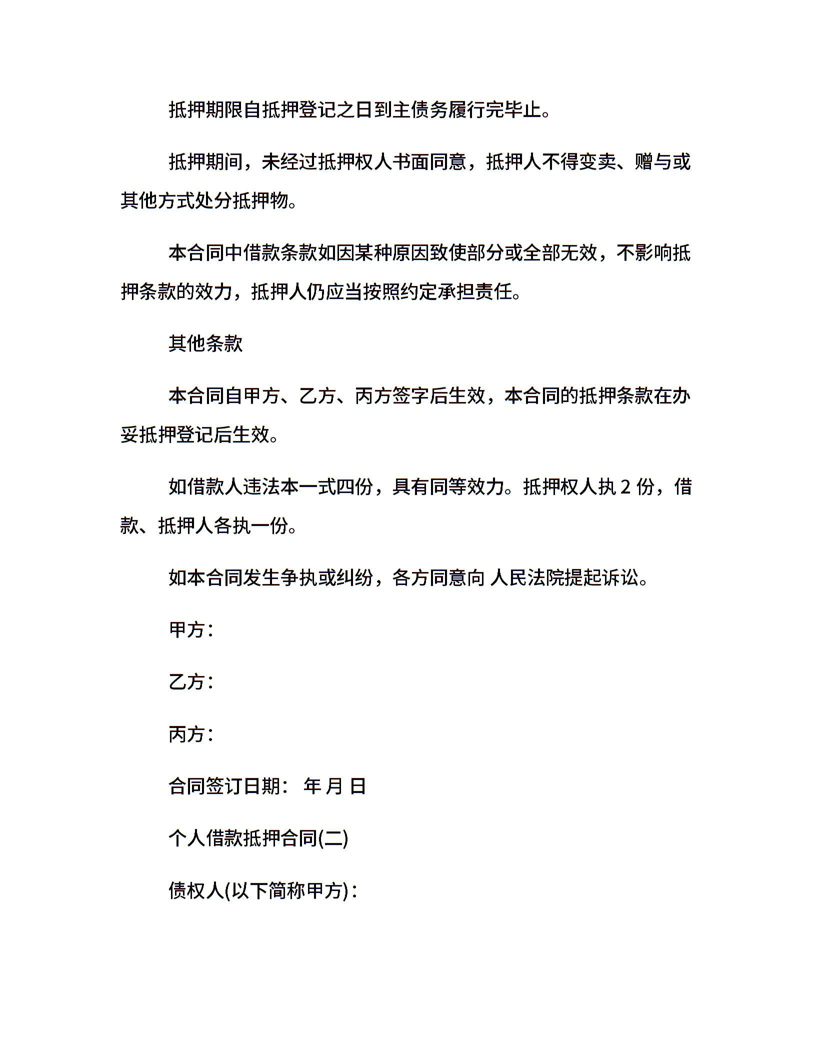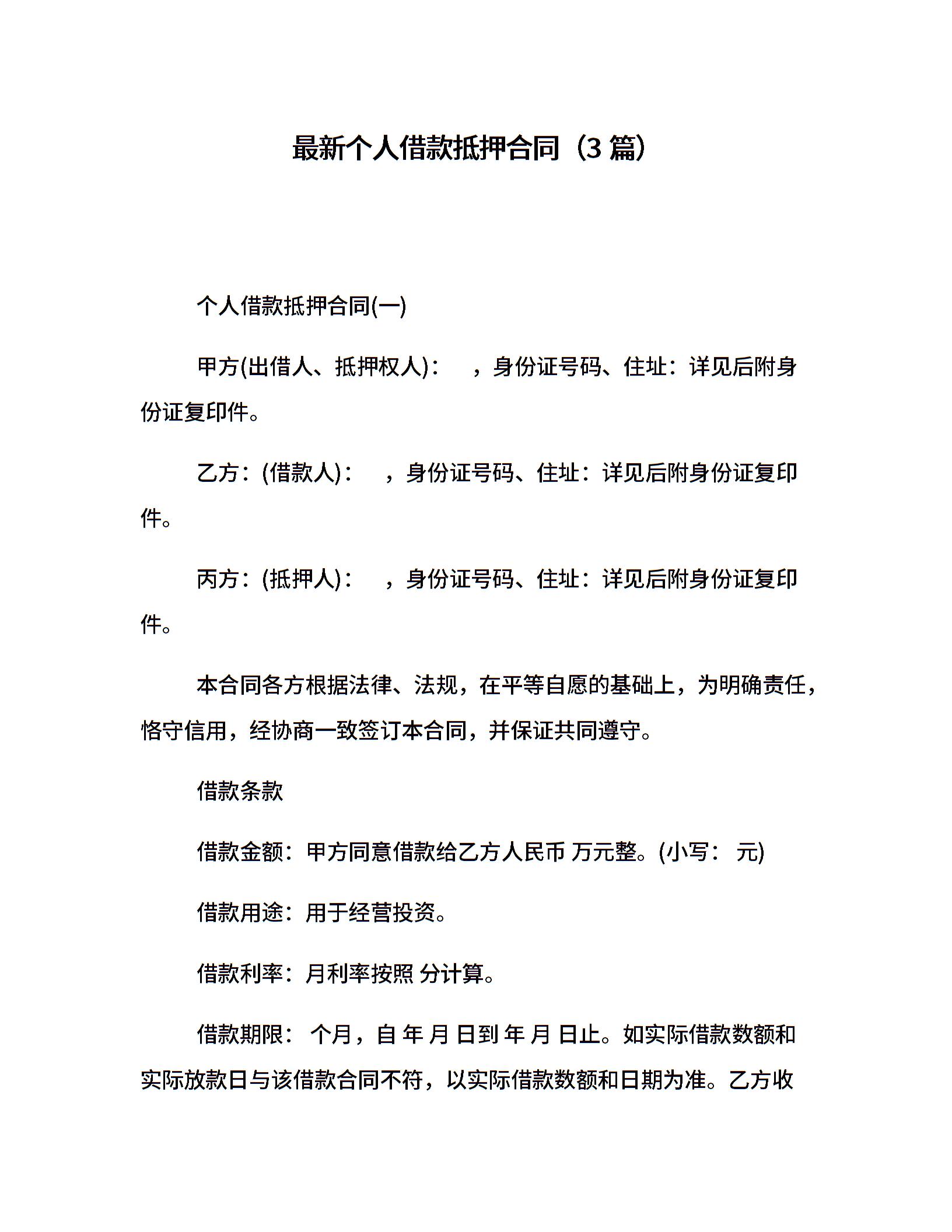 最新个人借款抵押合同(3篇)