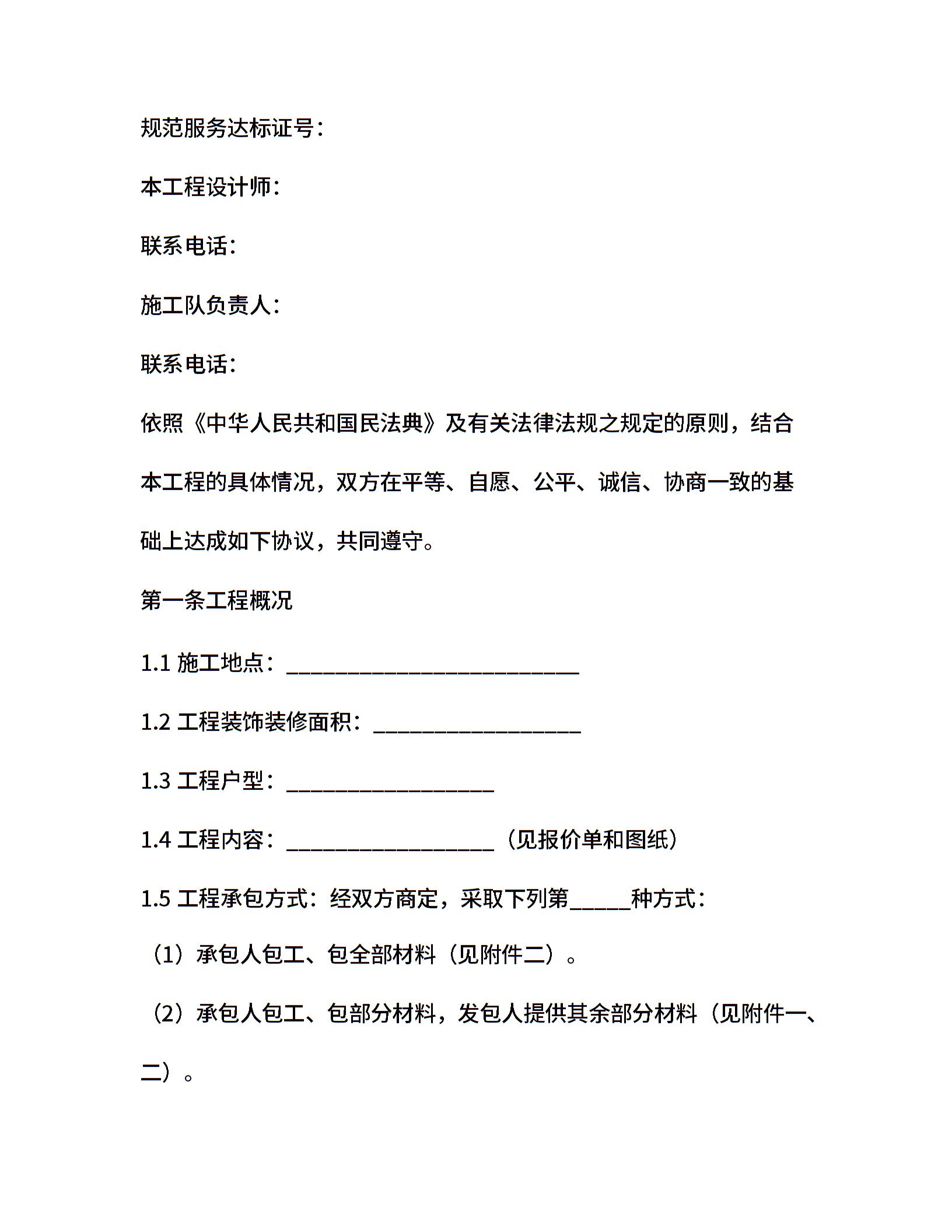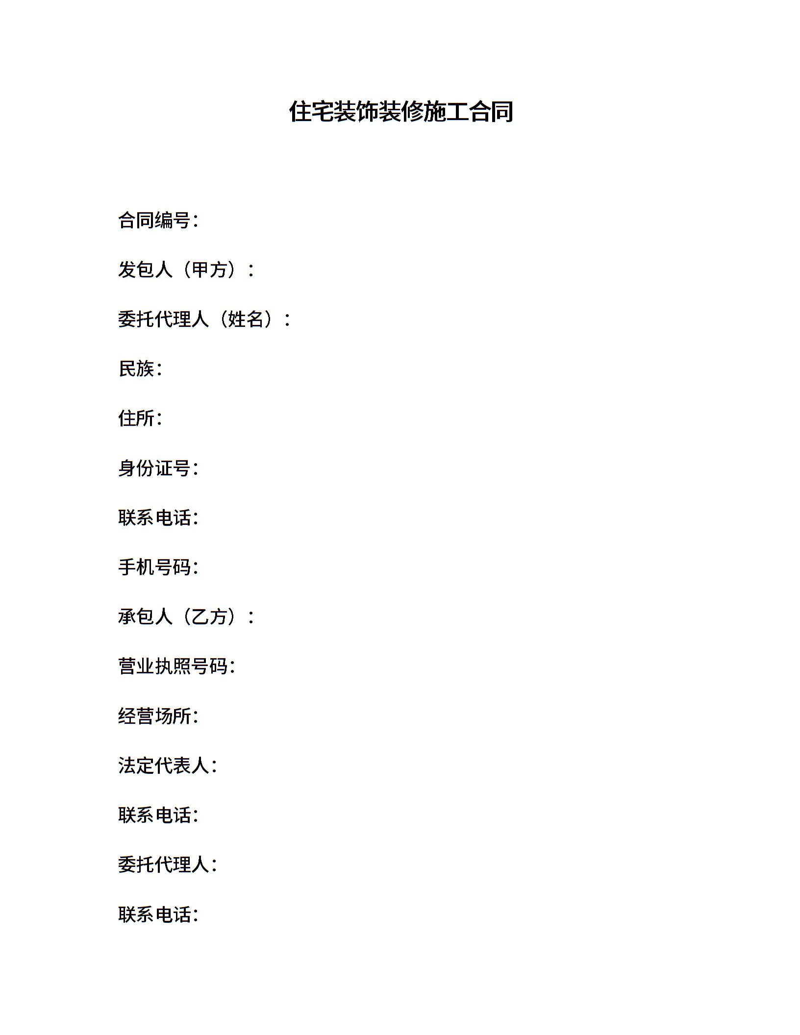 住宅装饰装修施工合同