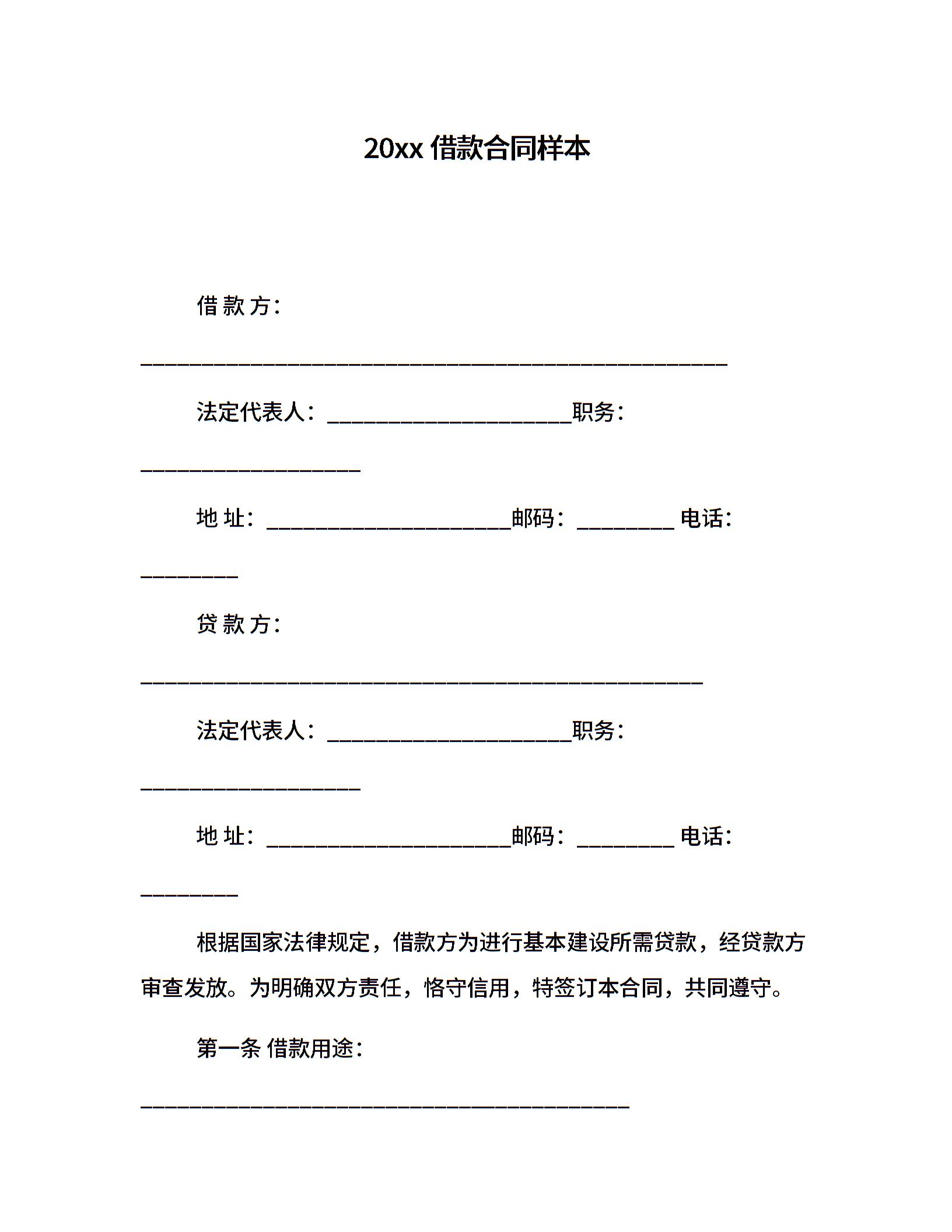 20xx借款合同样本