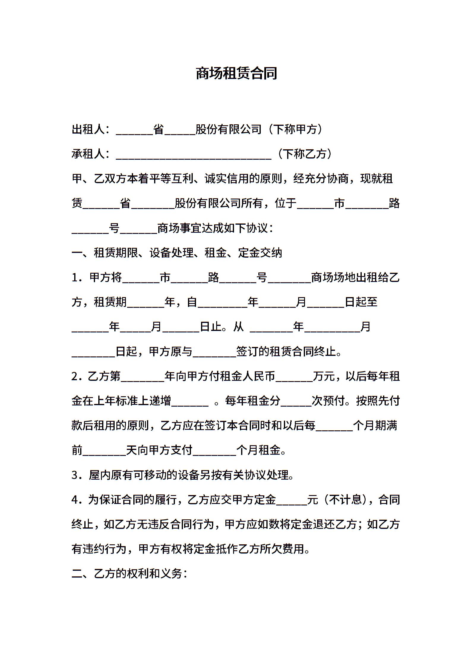 商场租赁合同