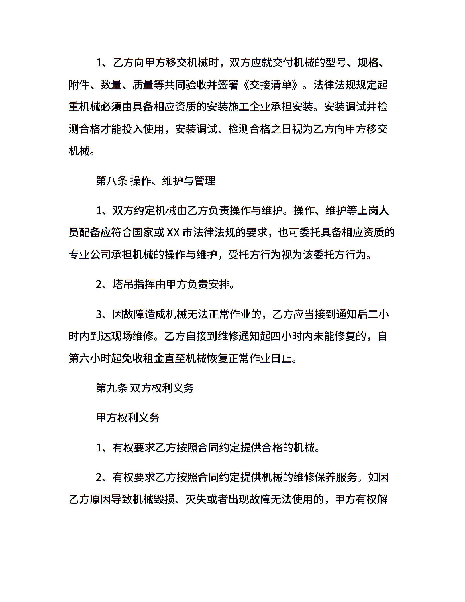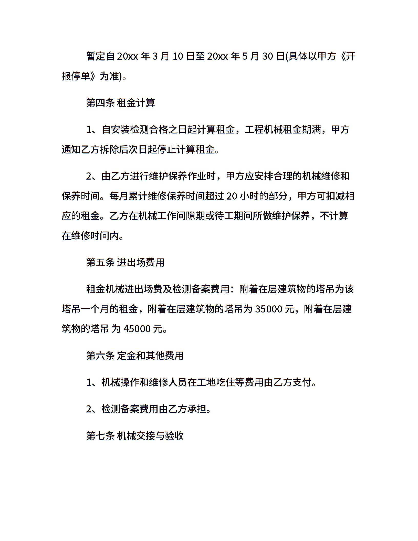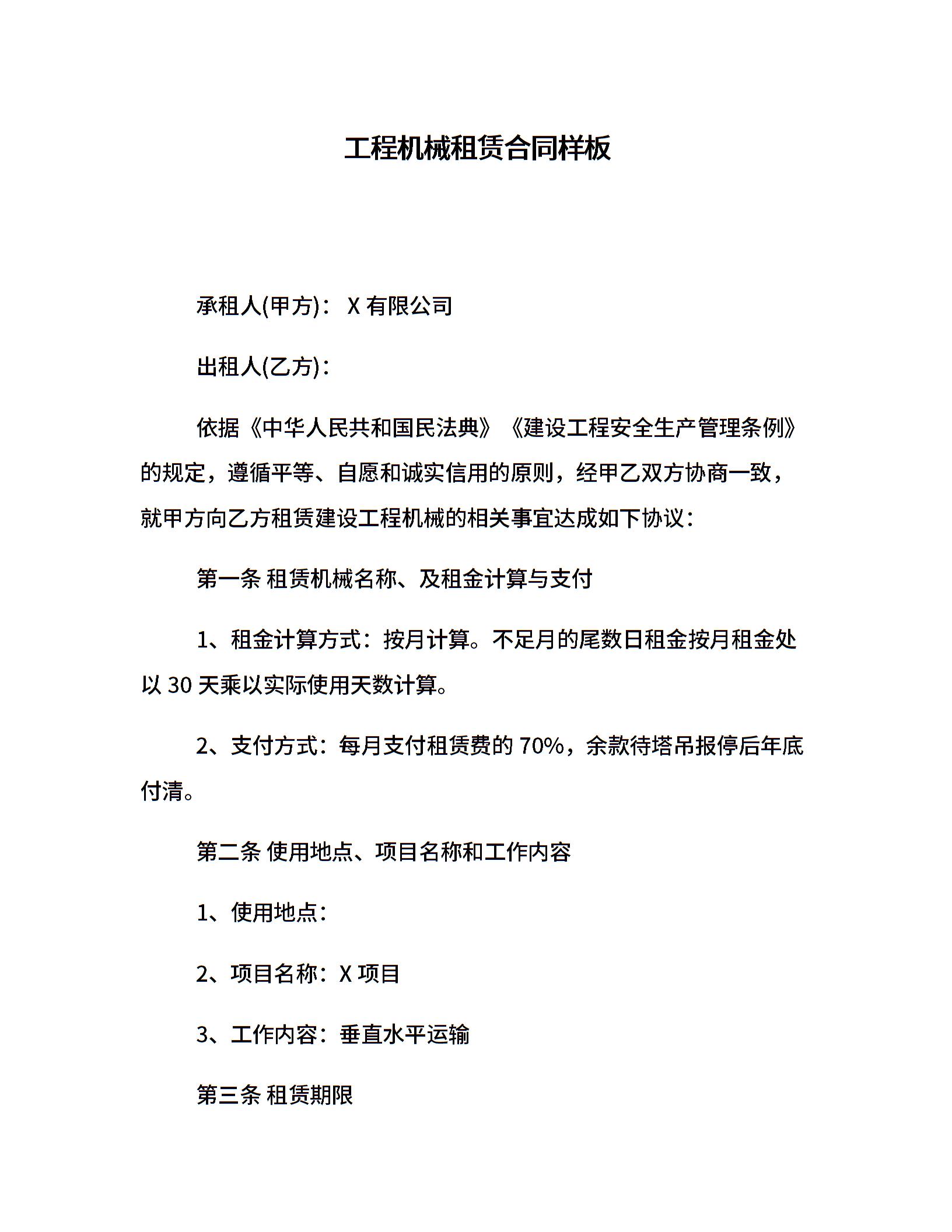 工程机械租赁合同样板