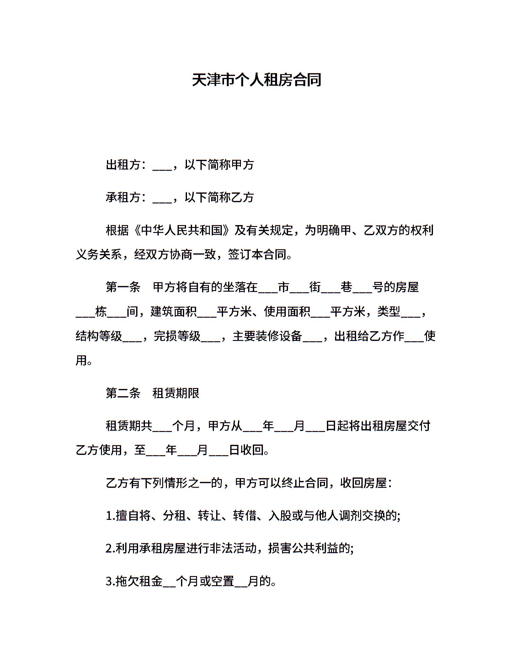 天津市个人租房合同
