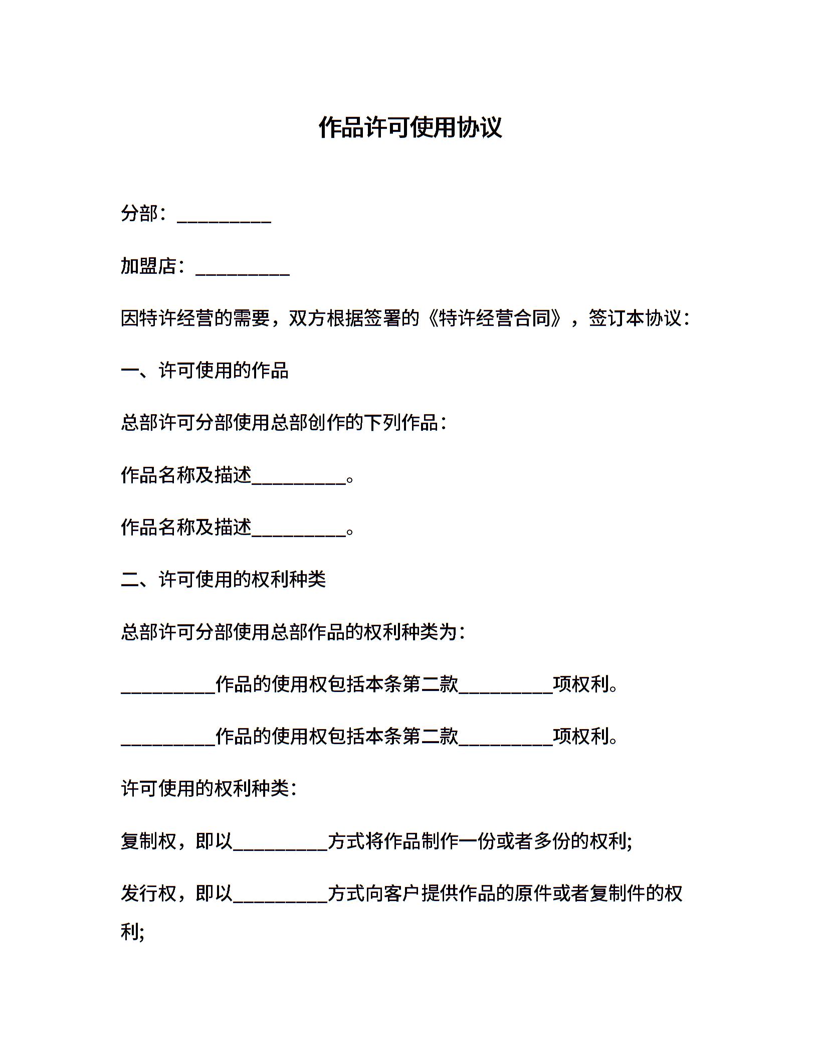 作品许可使用协议