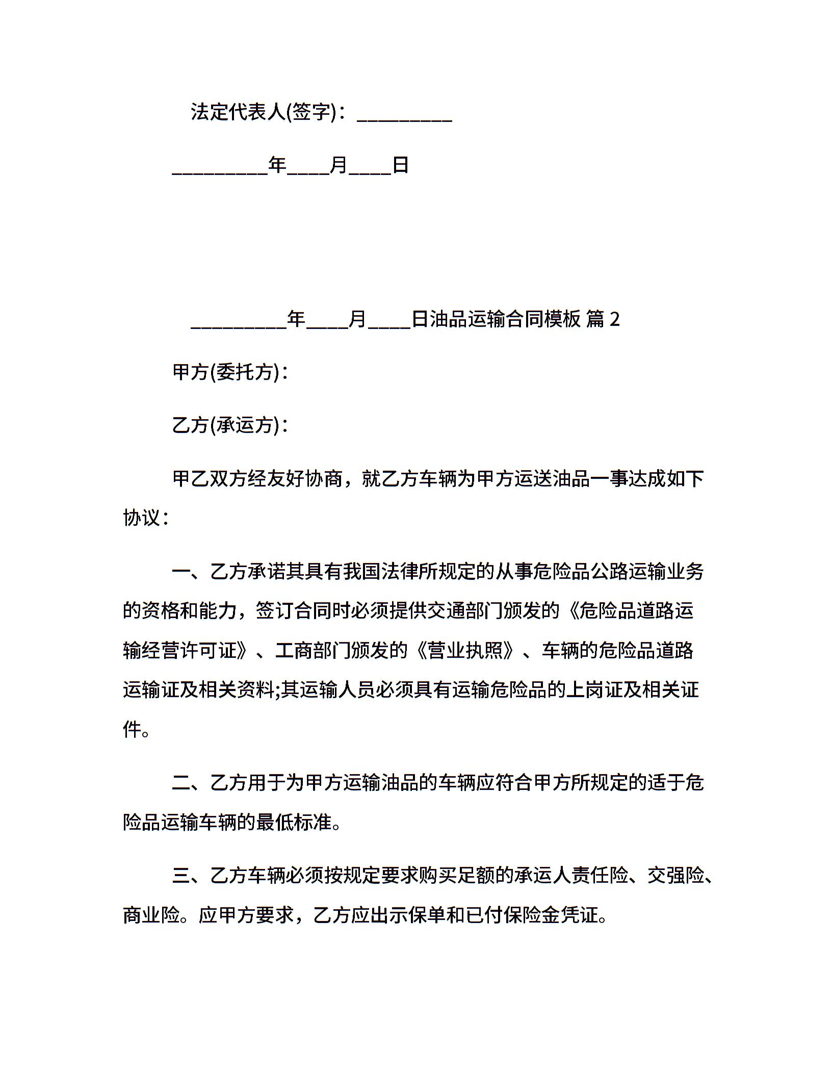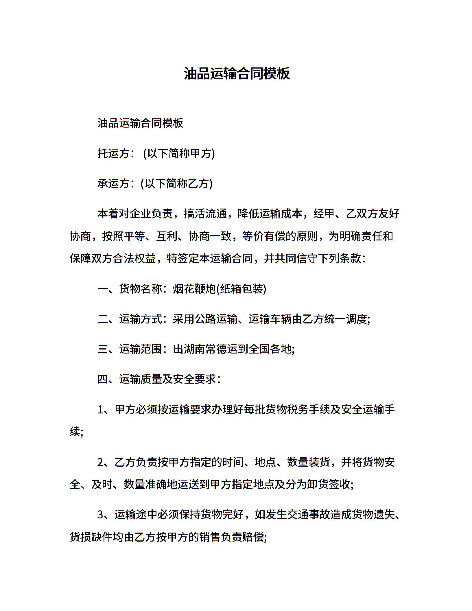 油品运输合同模板