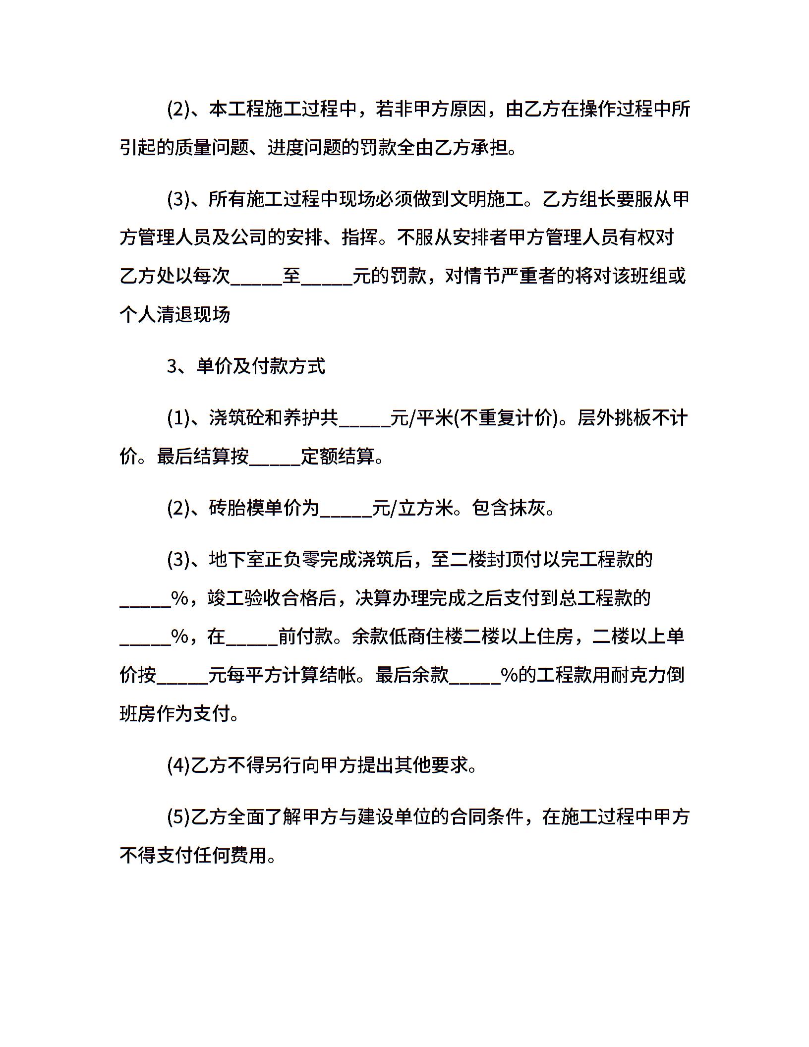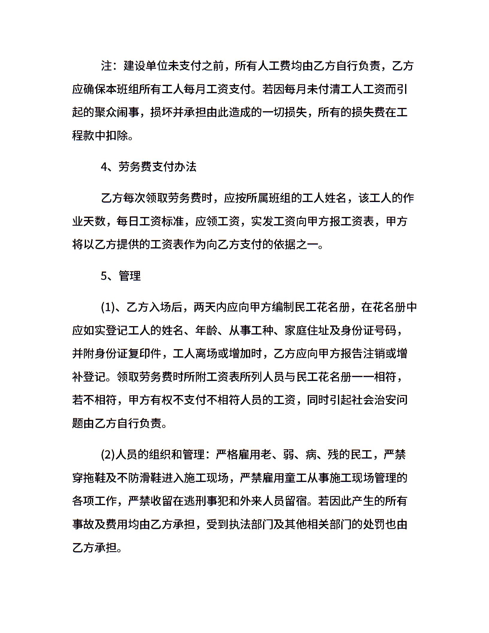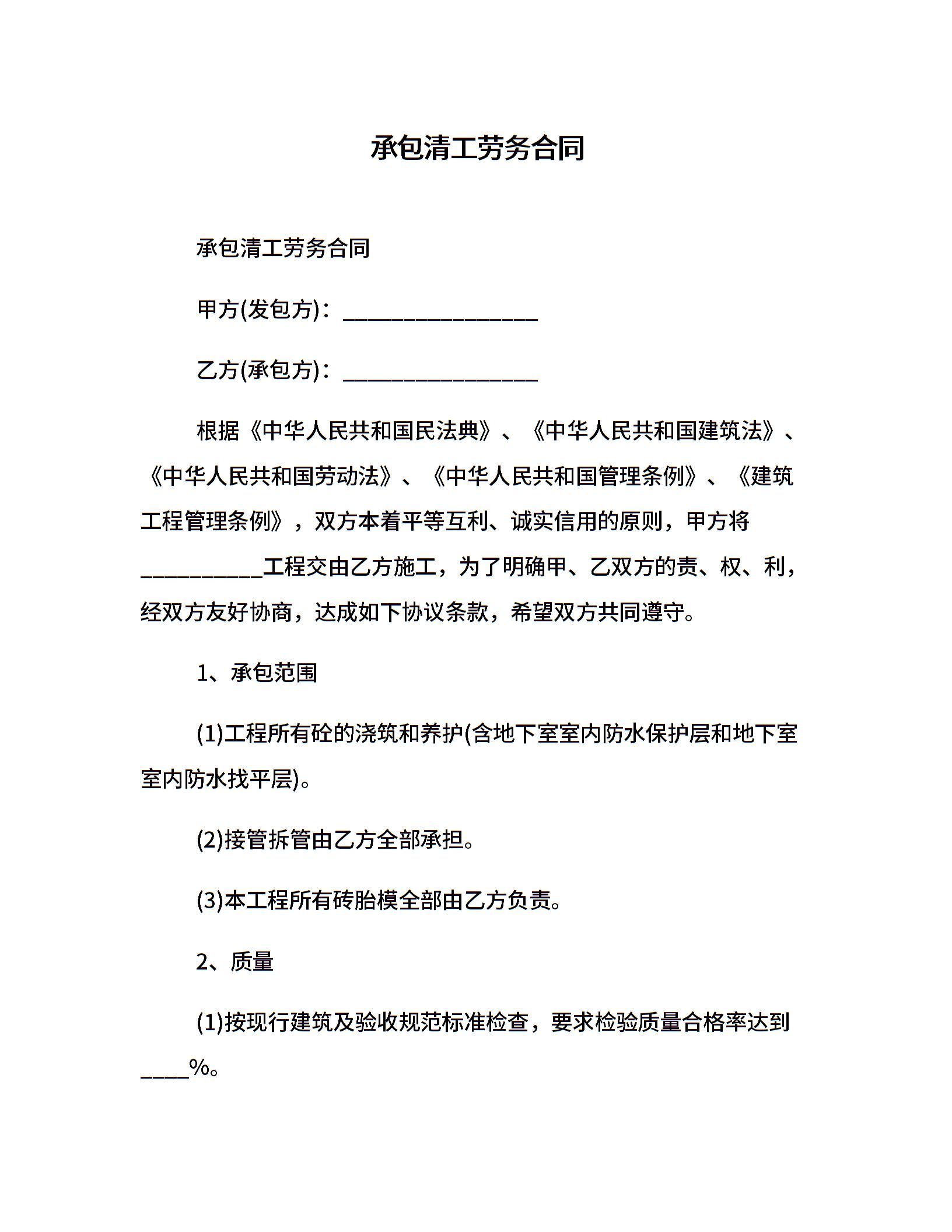 承包清工劳务合同