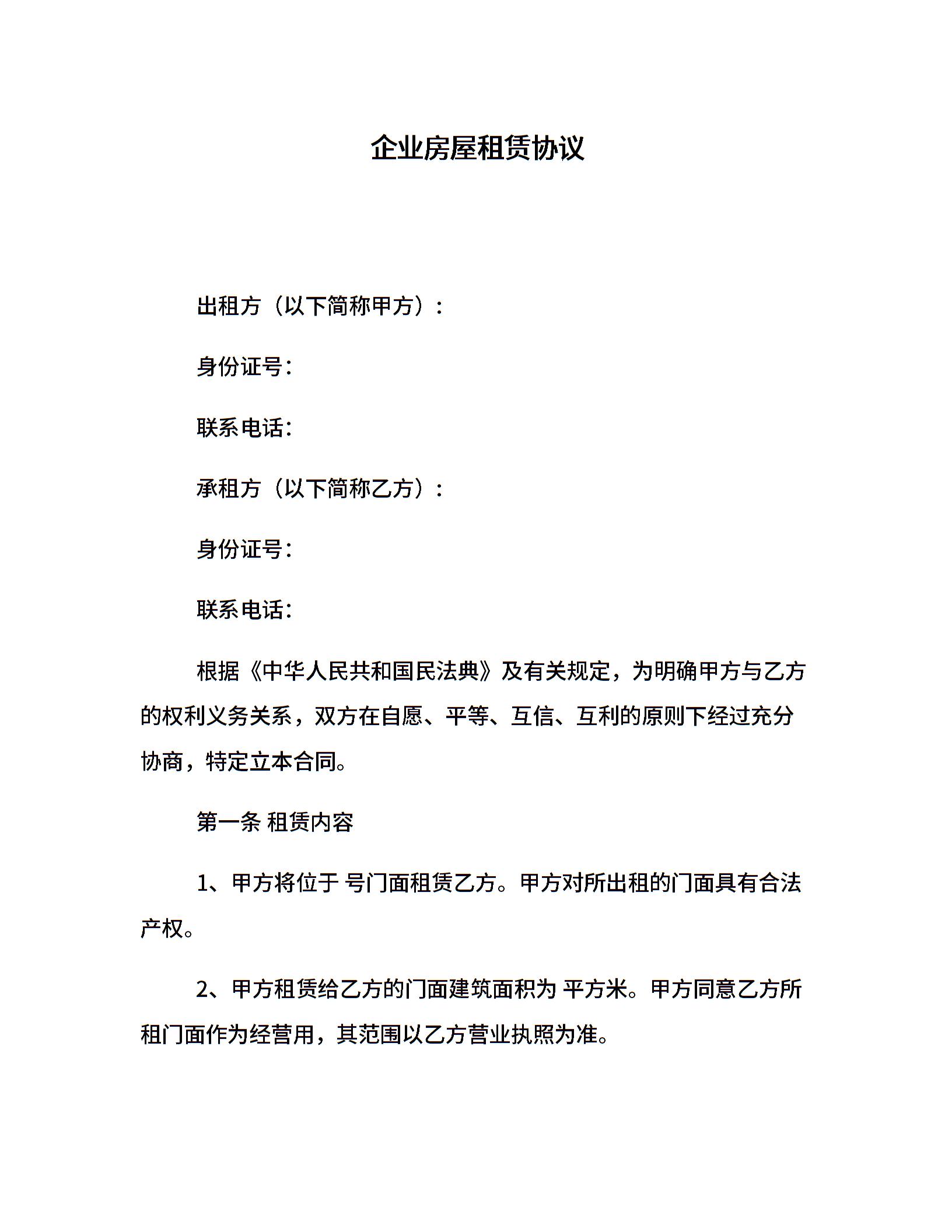 企业房屋租赁协议