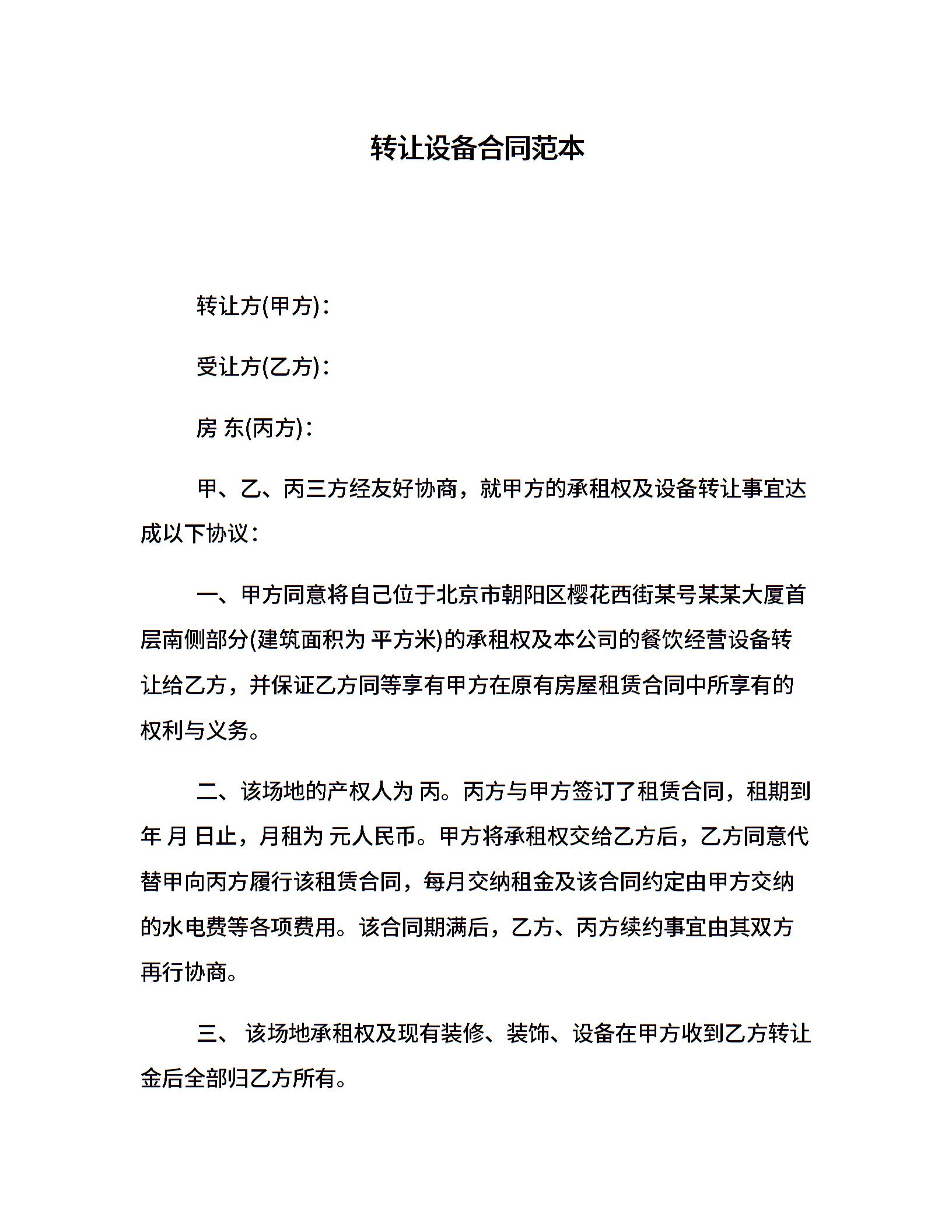 当前位置:量子办公 > 合同模板 > 转让合同 >
