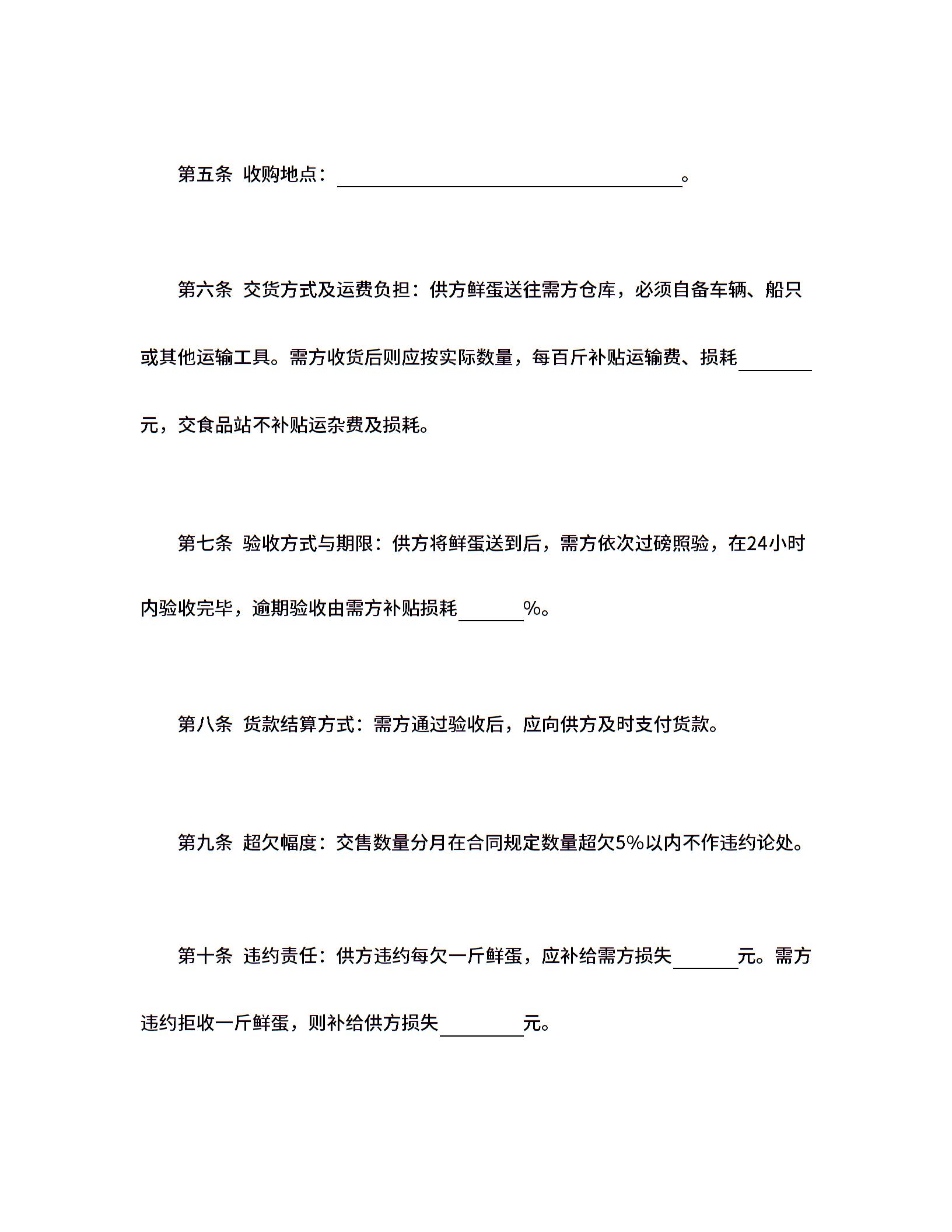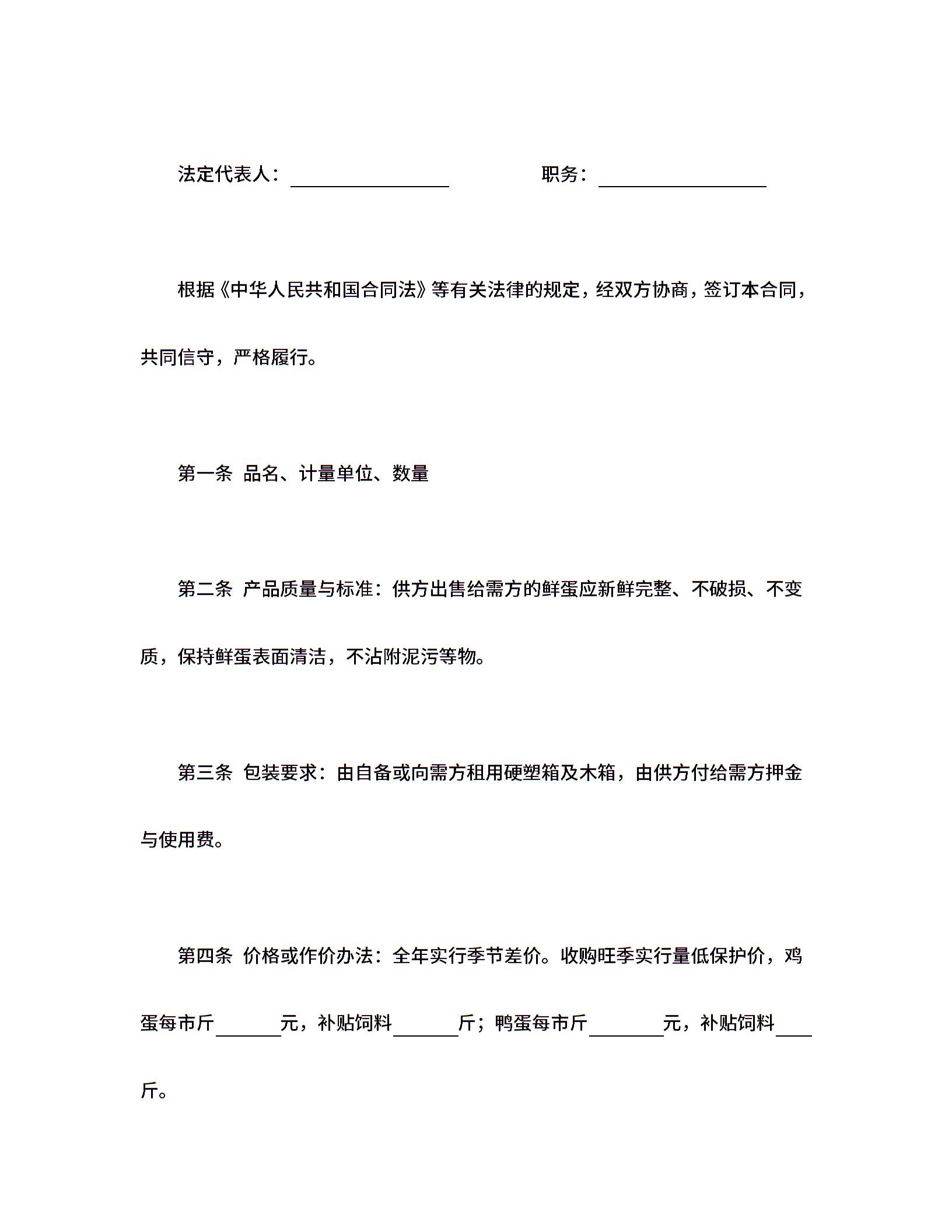 鲜蛋购销合同 (2)