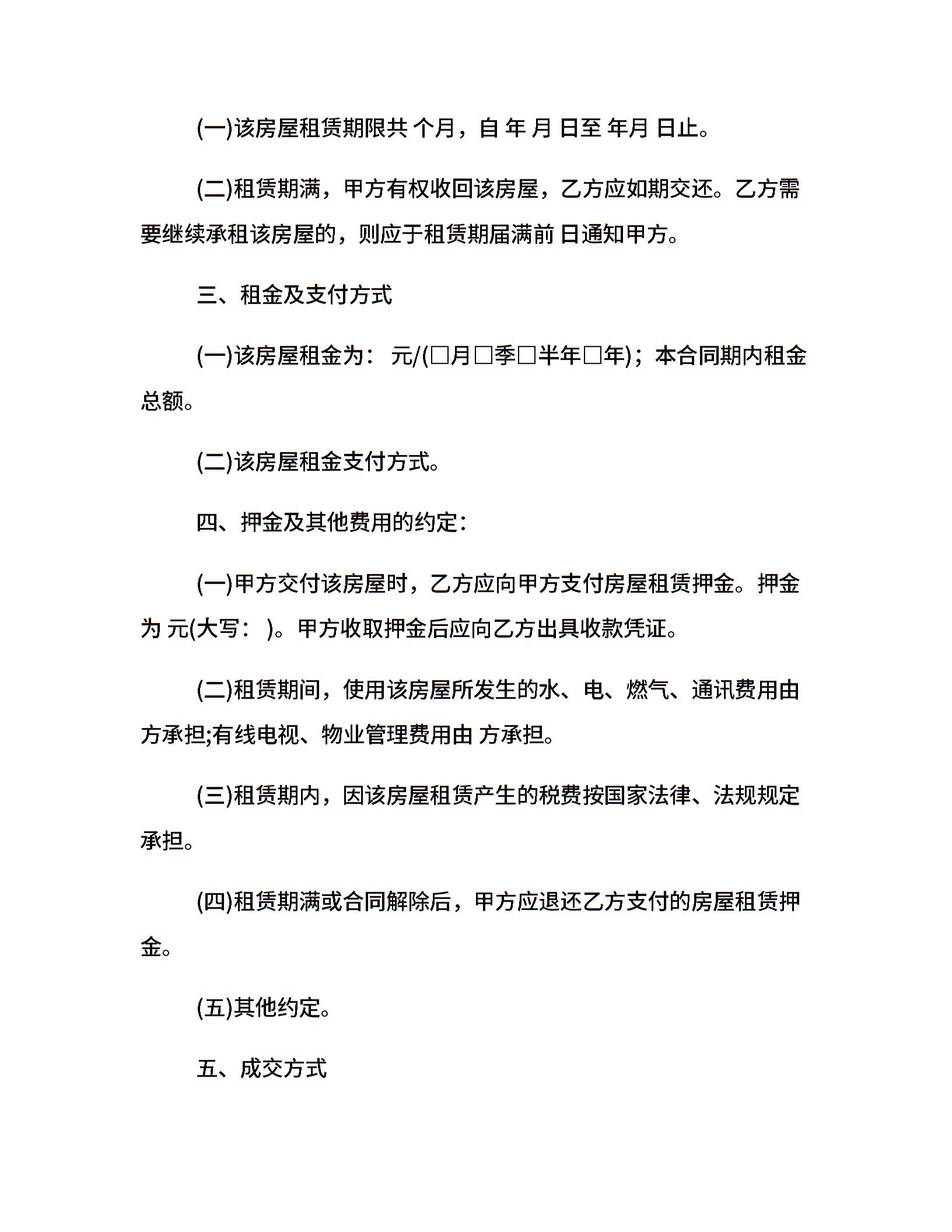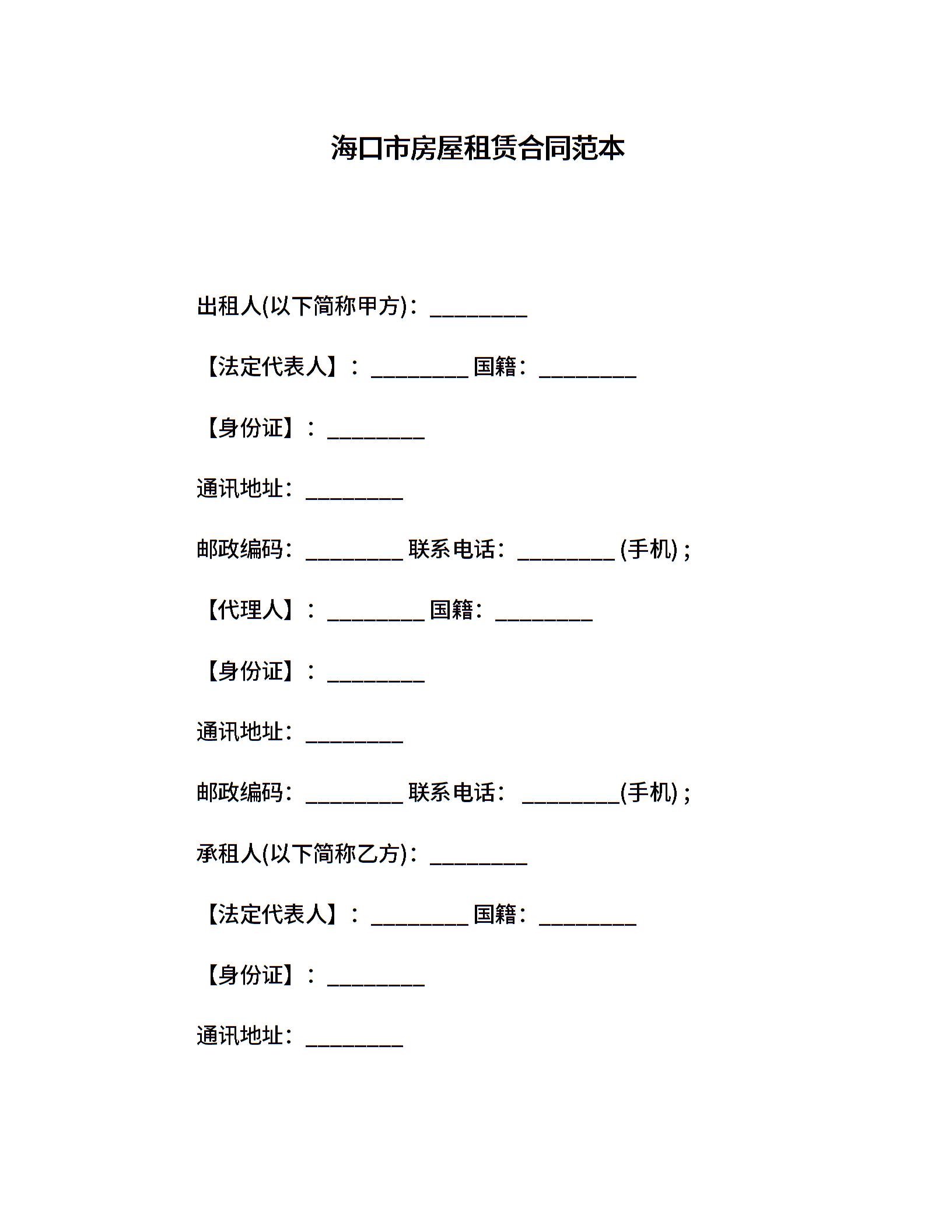 海口市房屋租赁合同范本