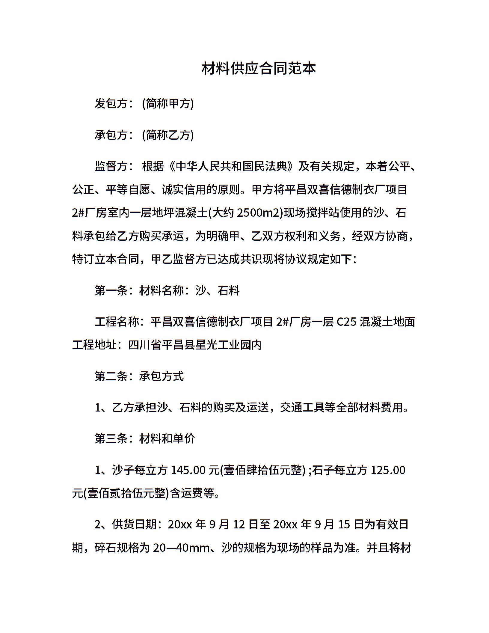 材料供应合同范本