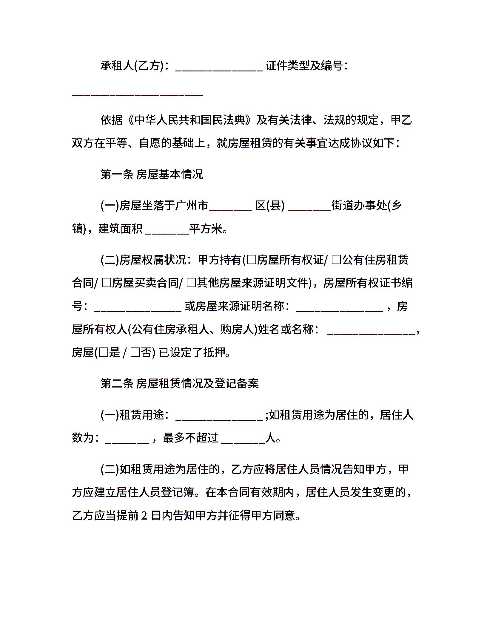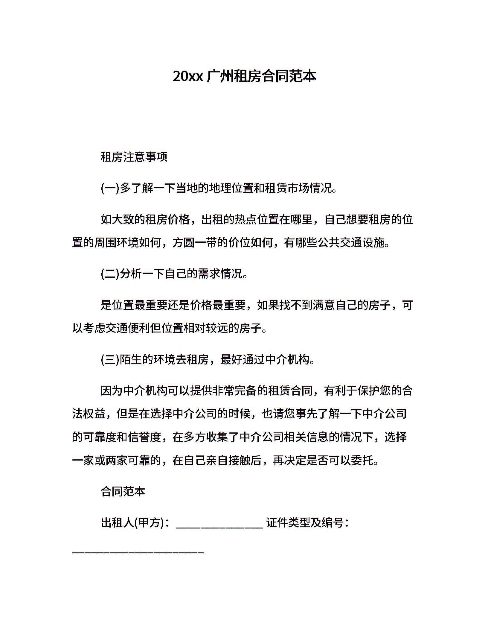 20xx广州租房合同范本