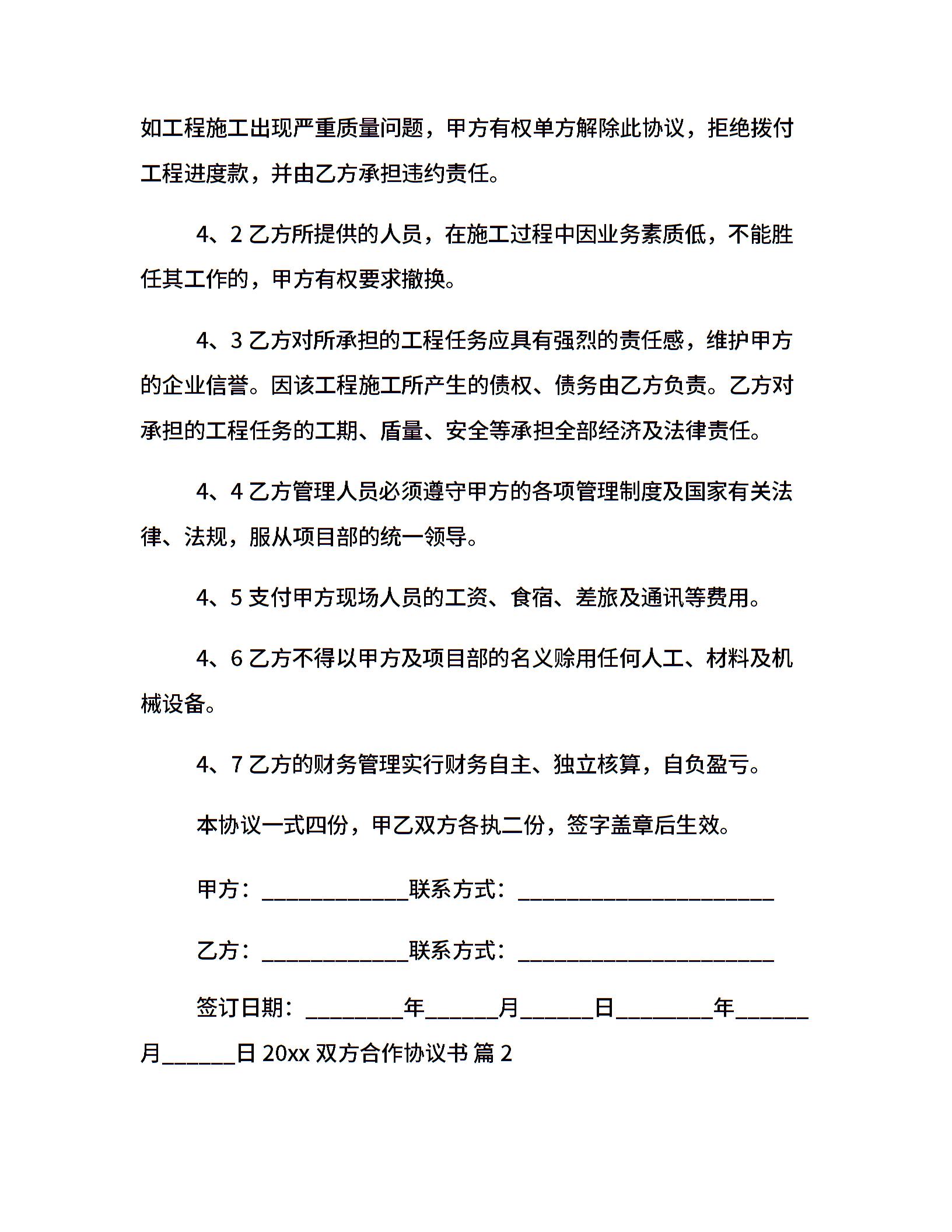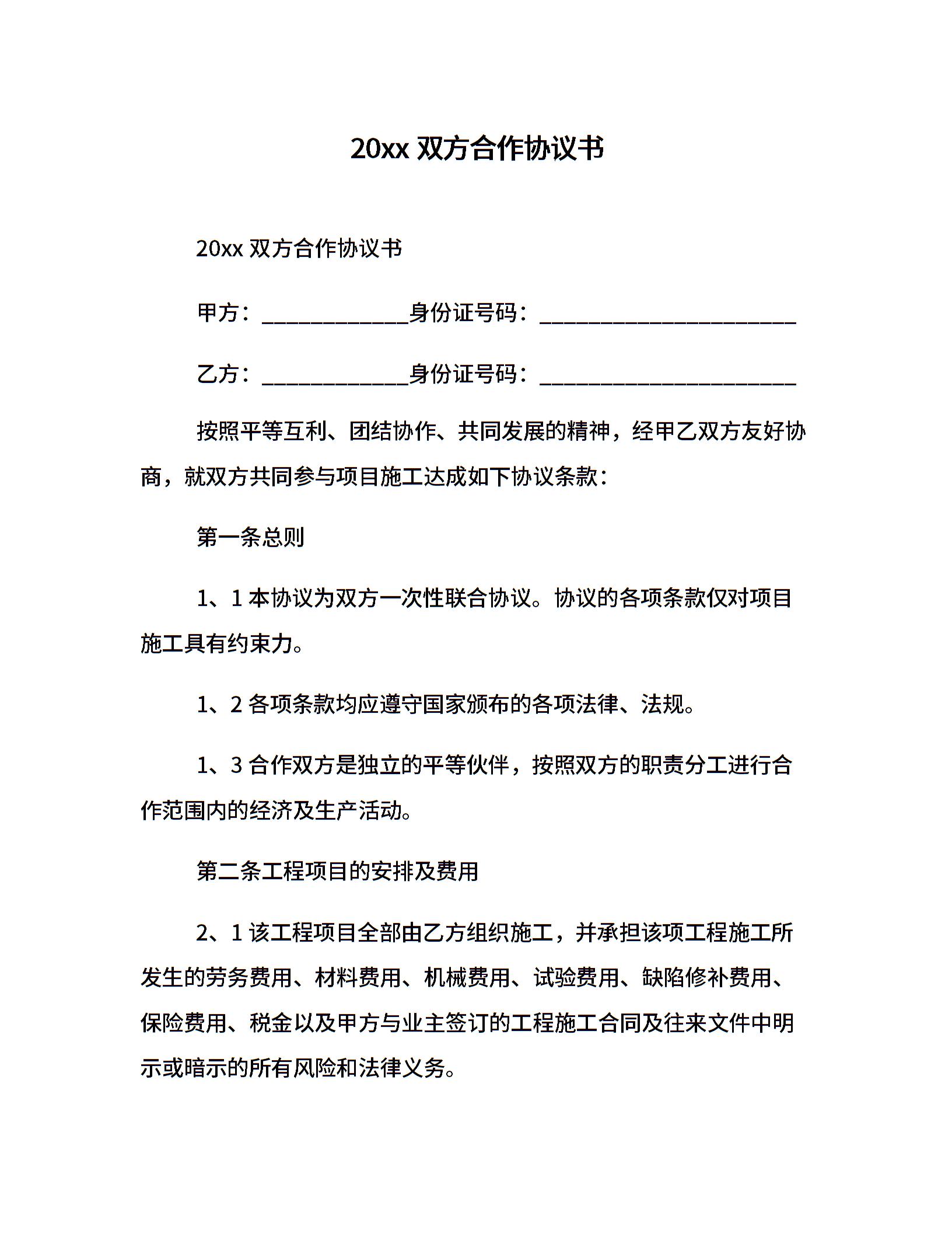 20xx双方合作协议书