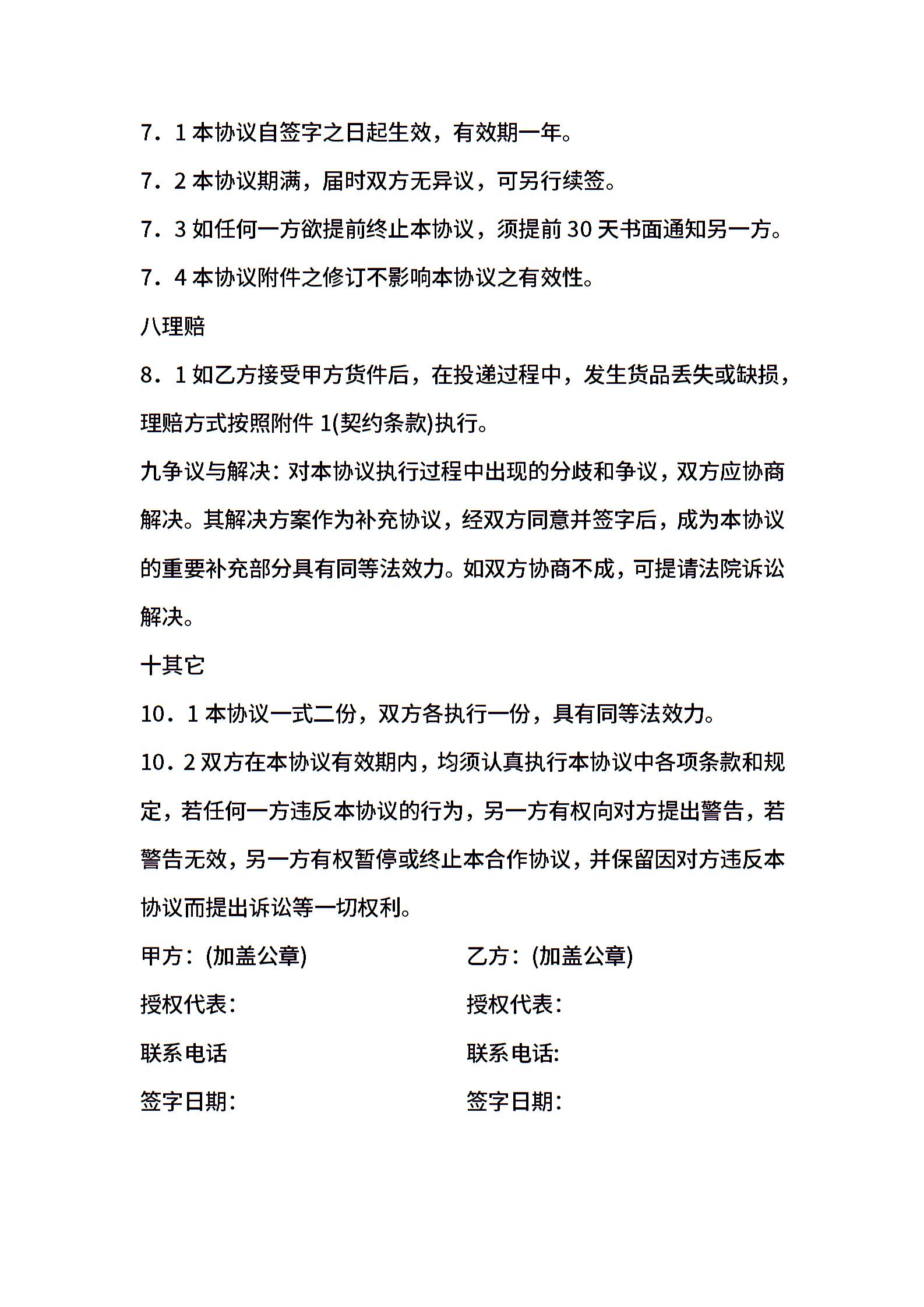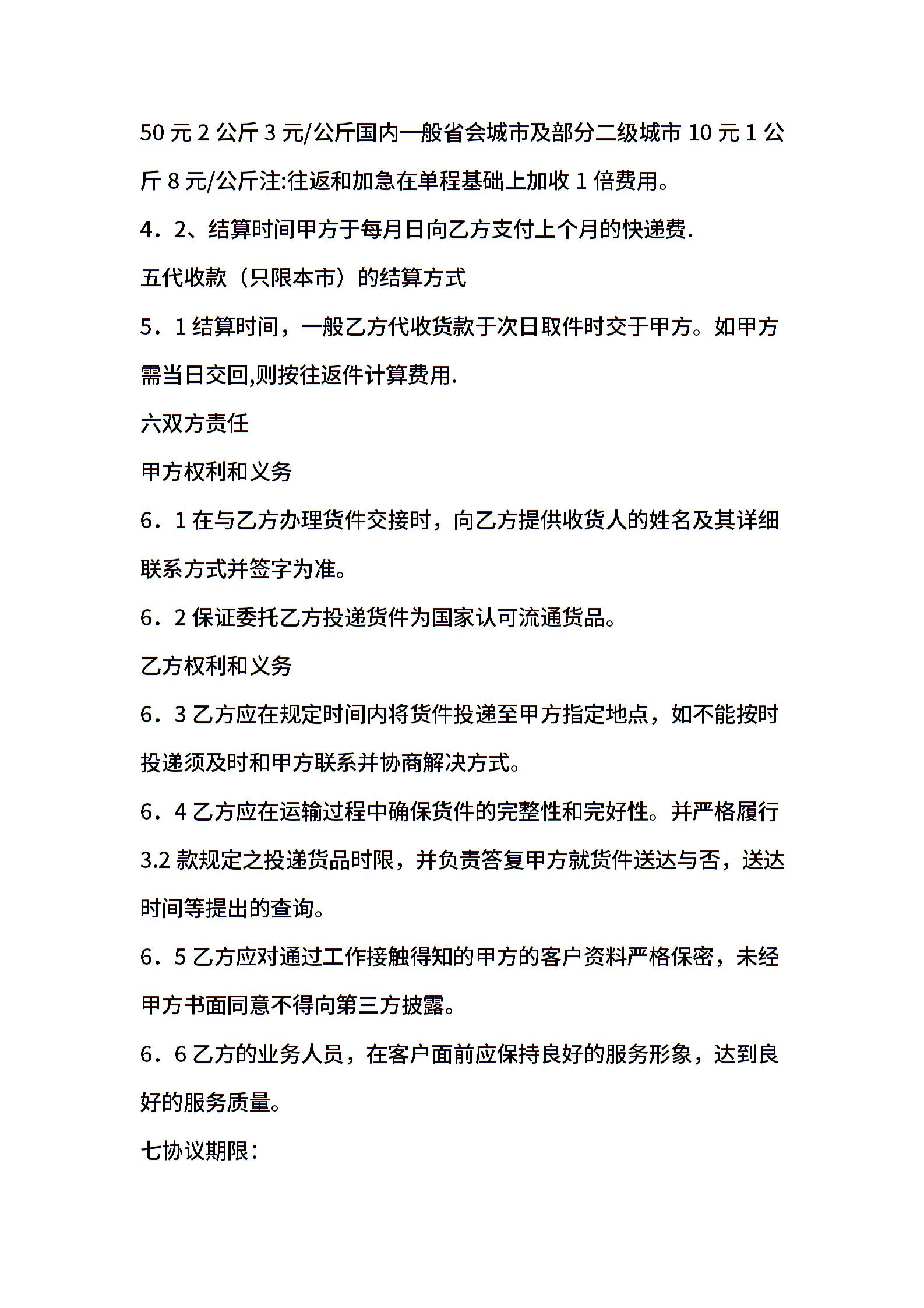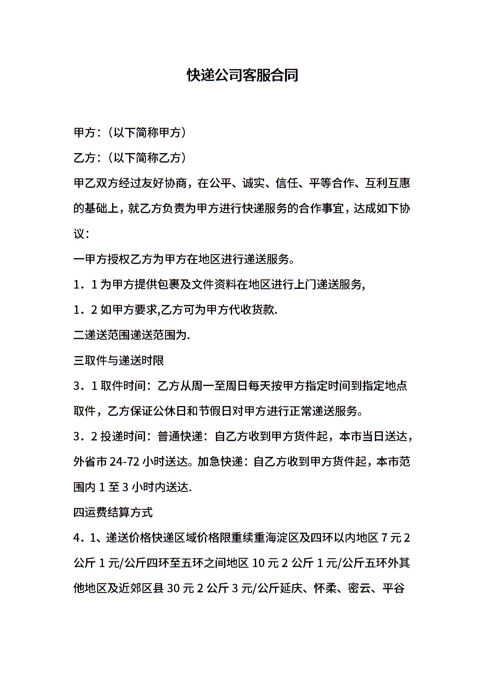 快递公司客服合同书样本