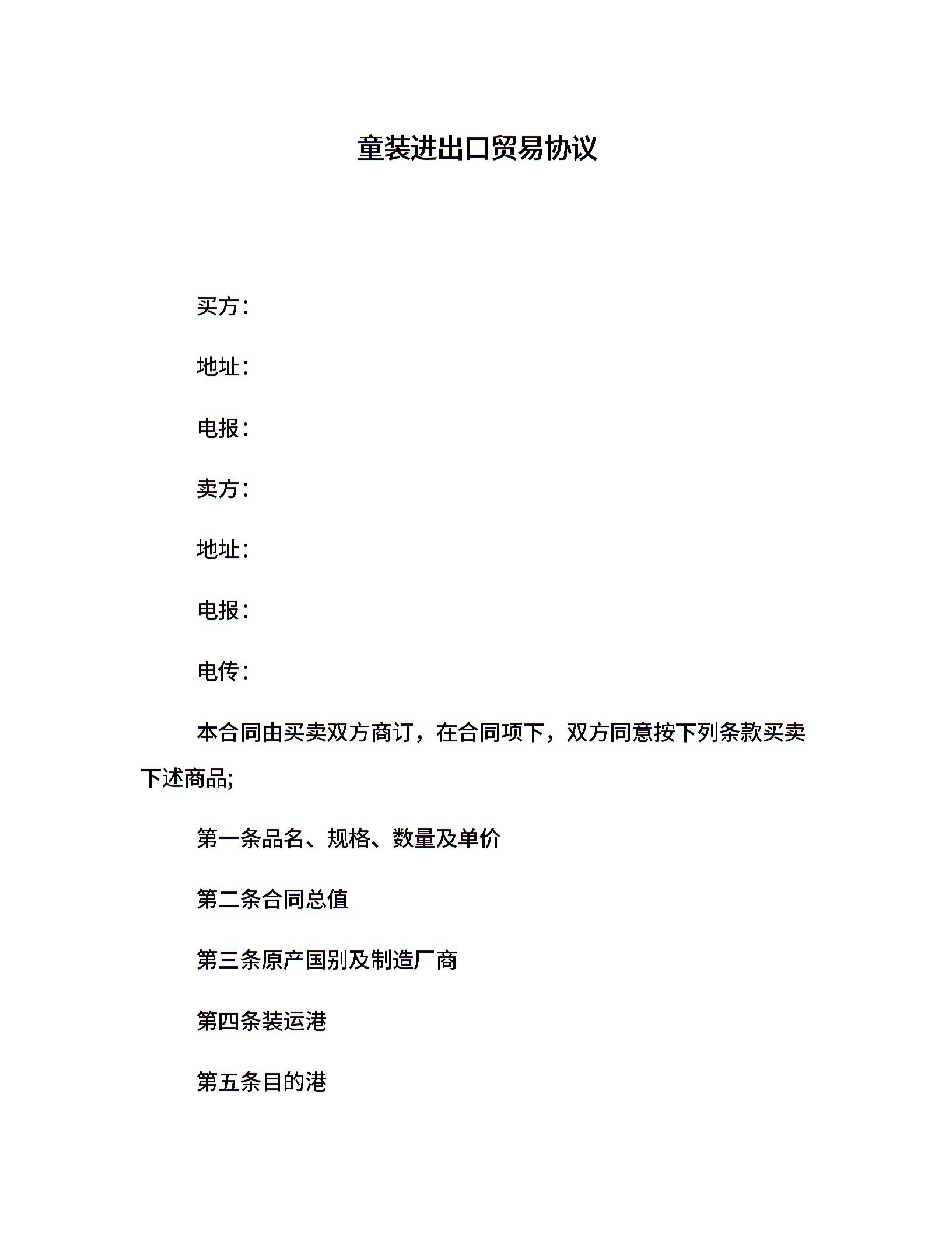 童装进出口贸易协议