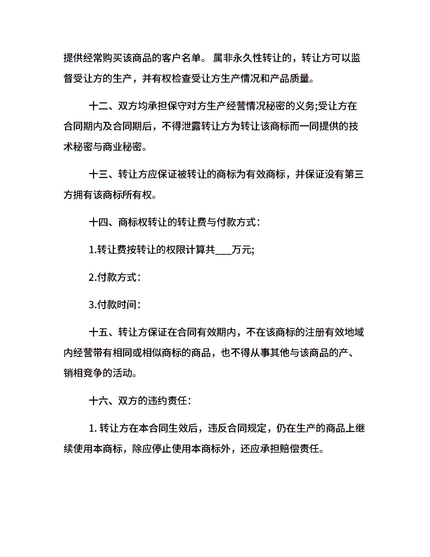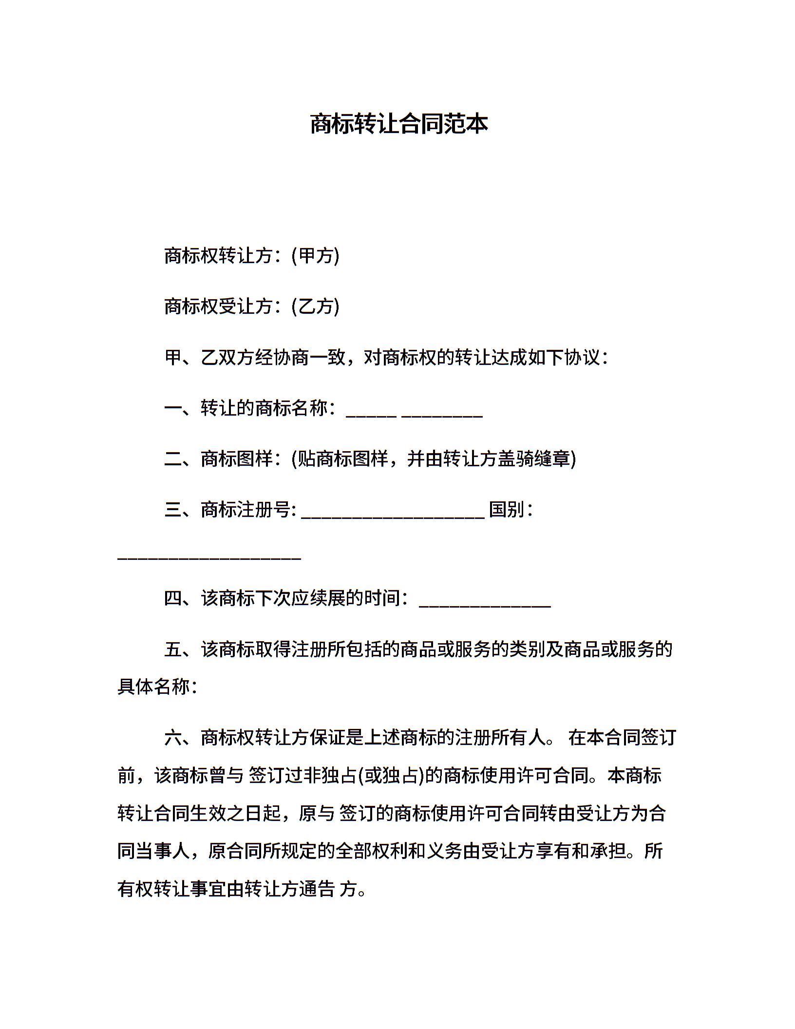 商标转让合同范本