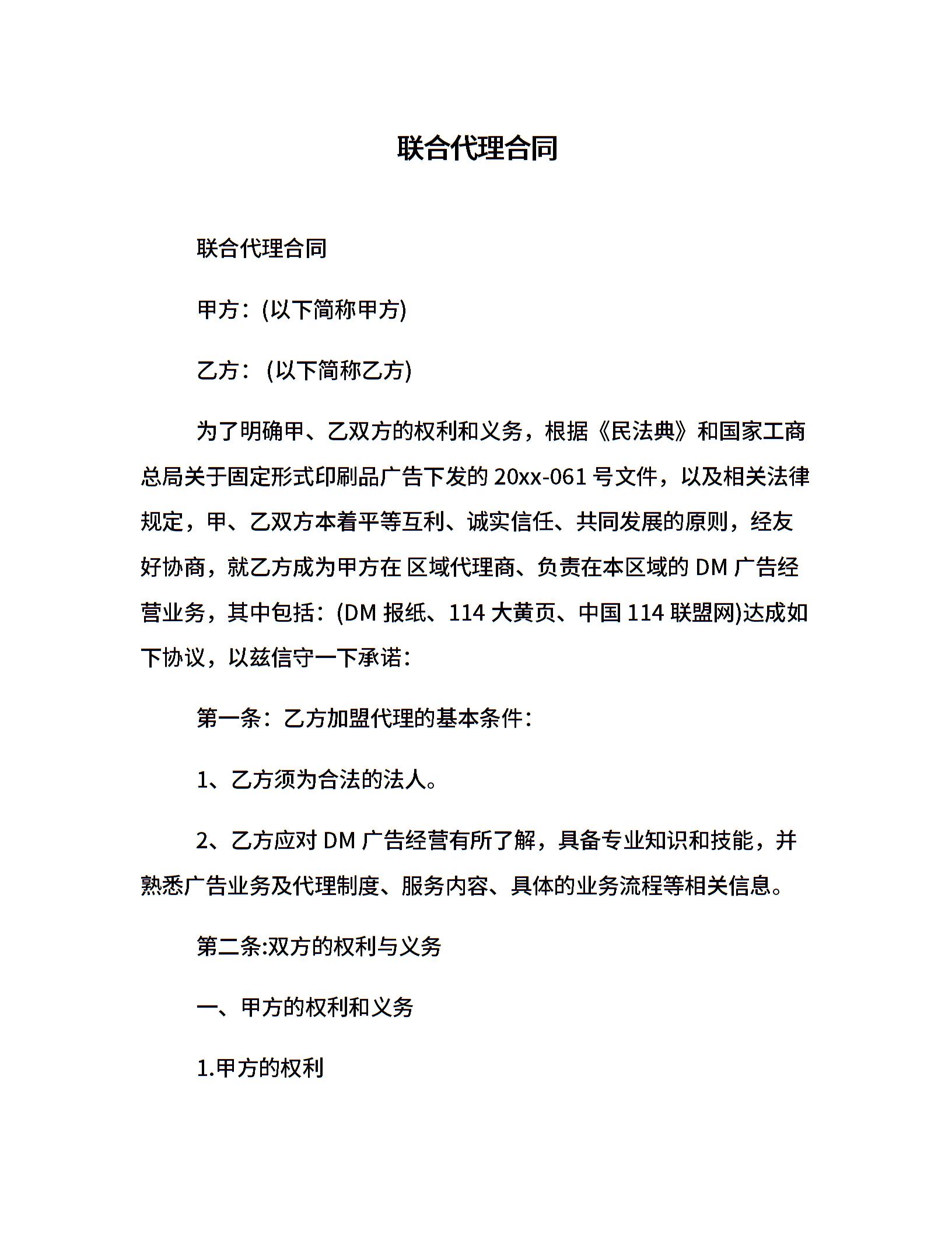 联合代理合同
