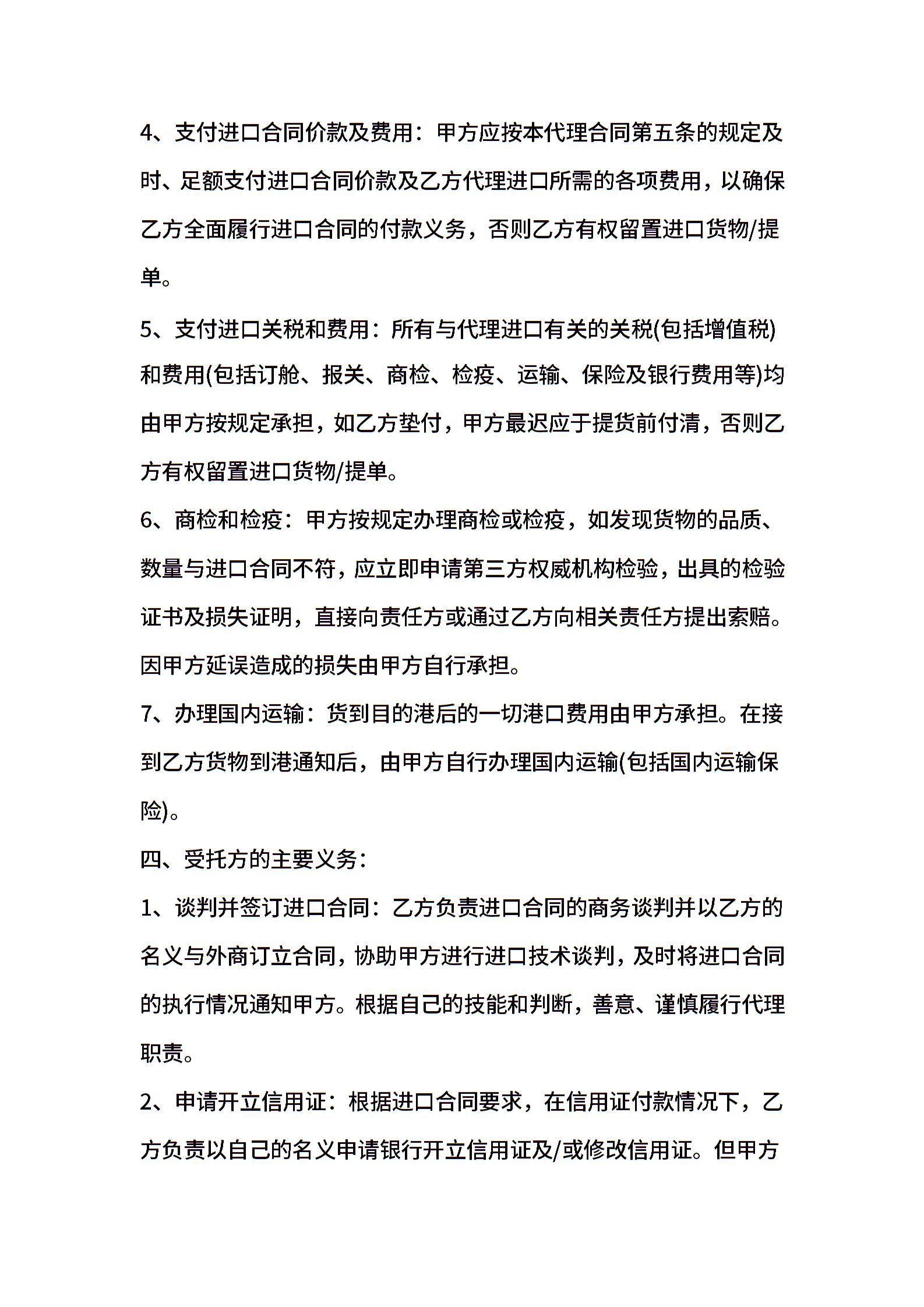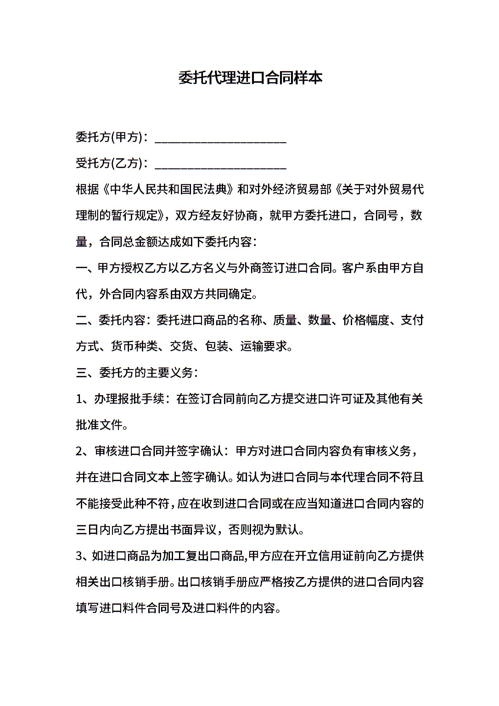 委托代理进口合同样本