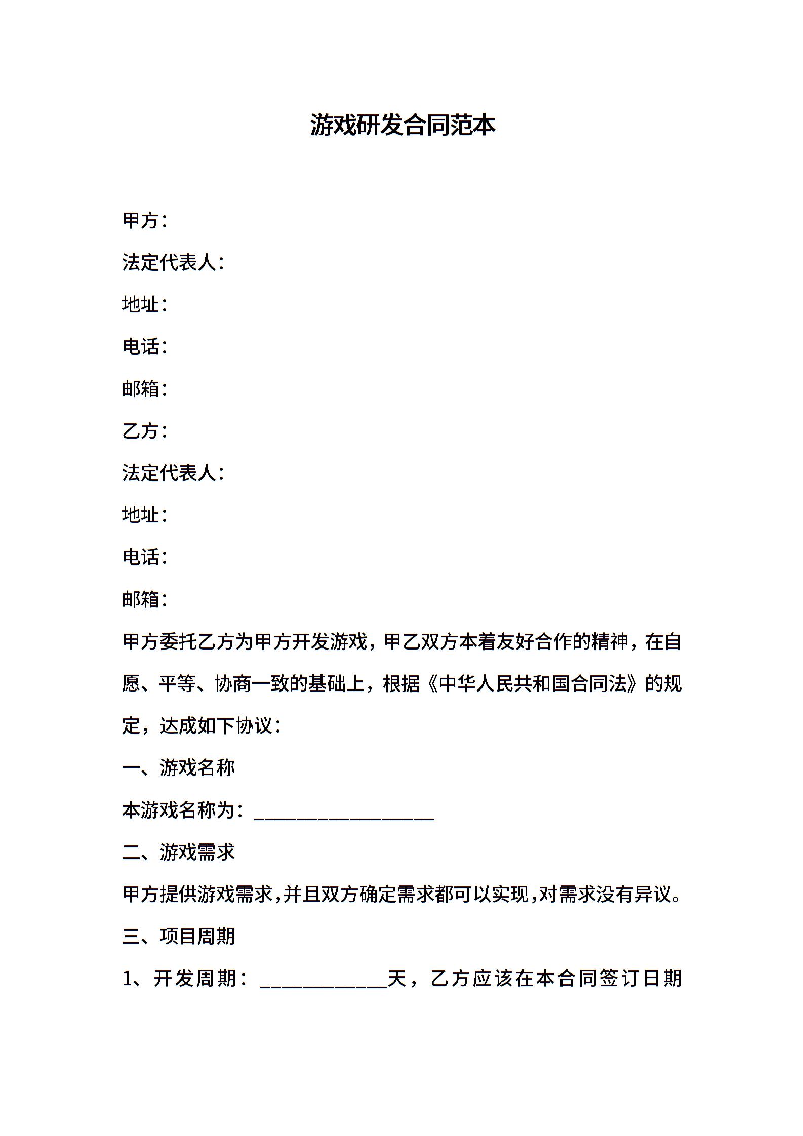 游戏研发合同范本