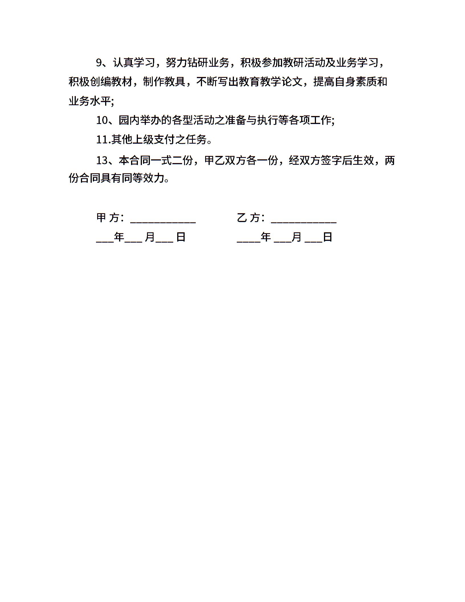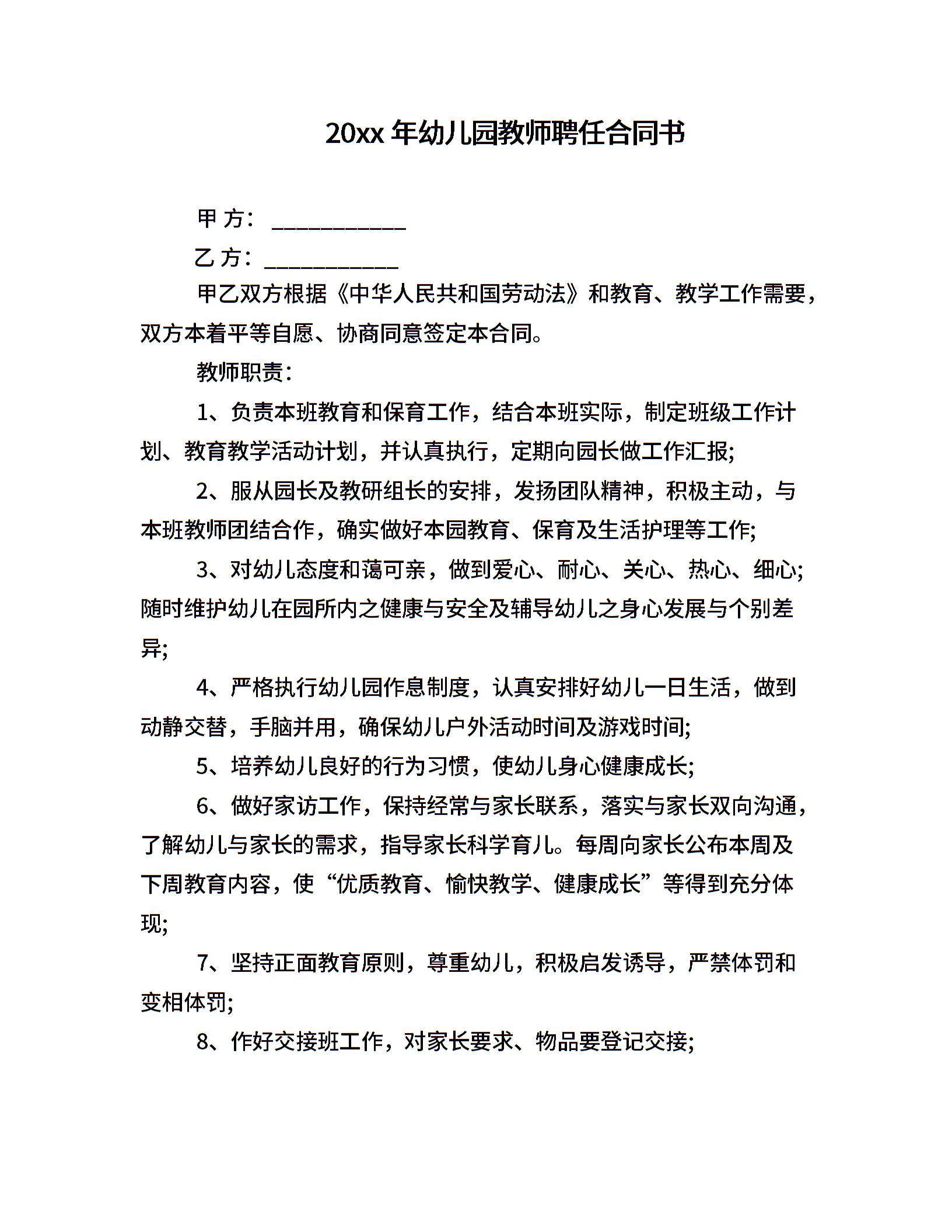 20xx年幼儿园教师聘任合同书