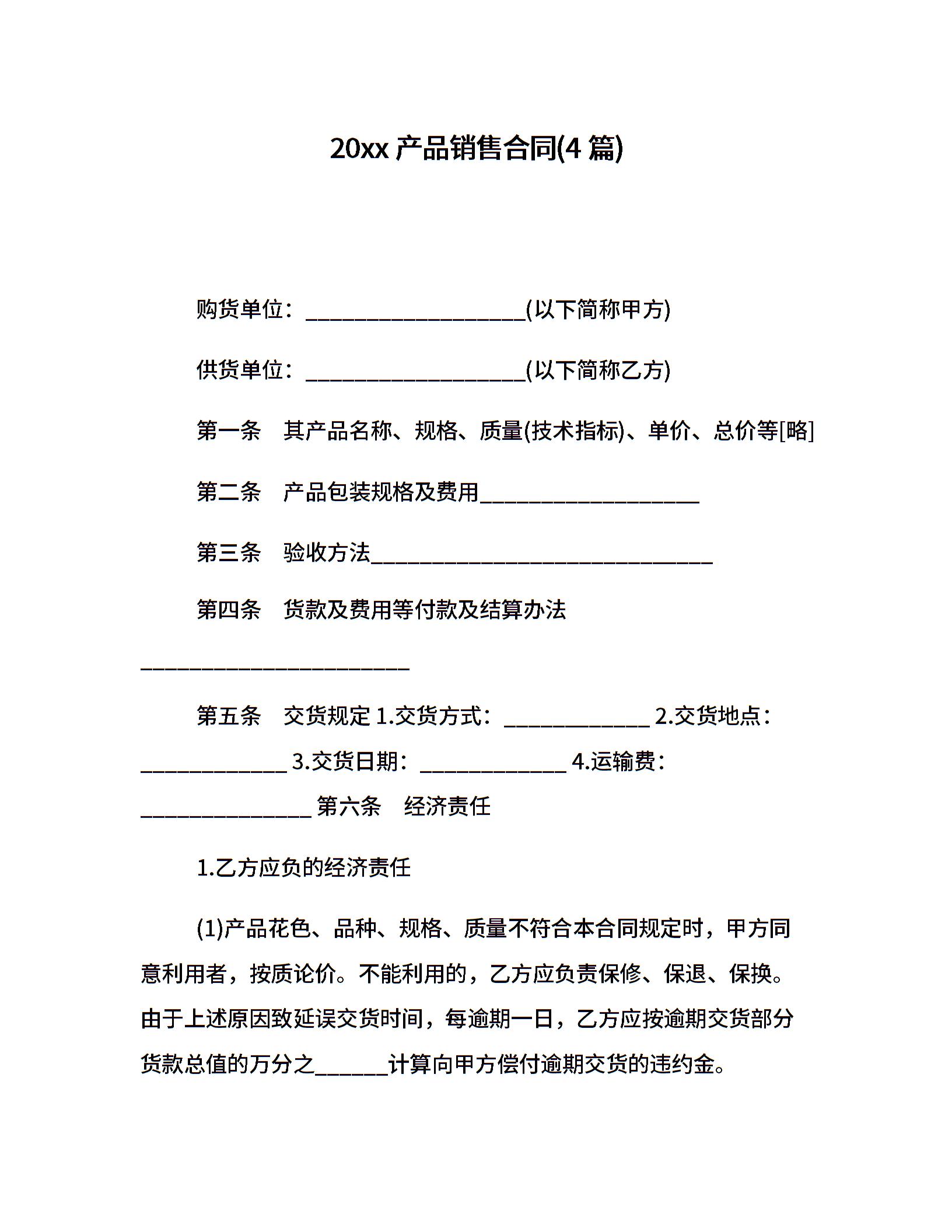 20xx产品销售合同(4篇)