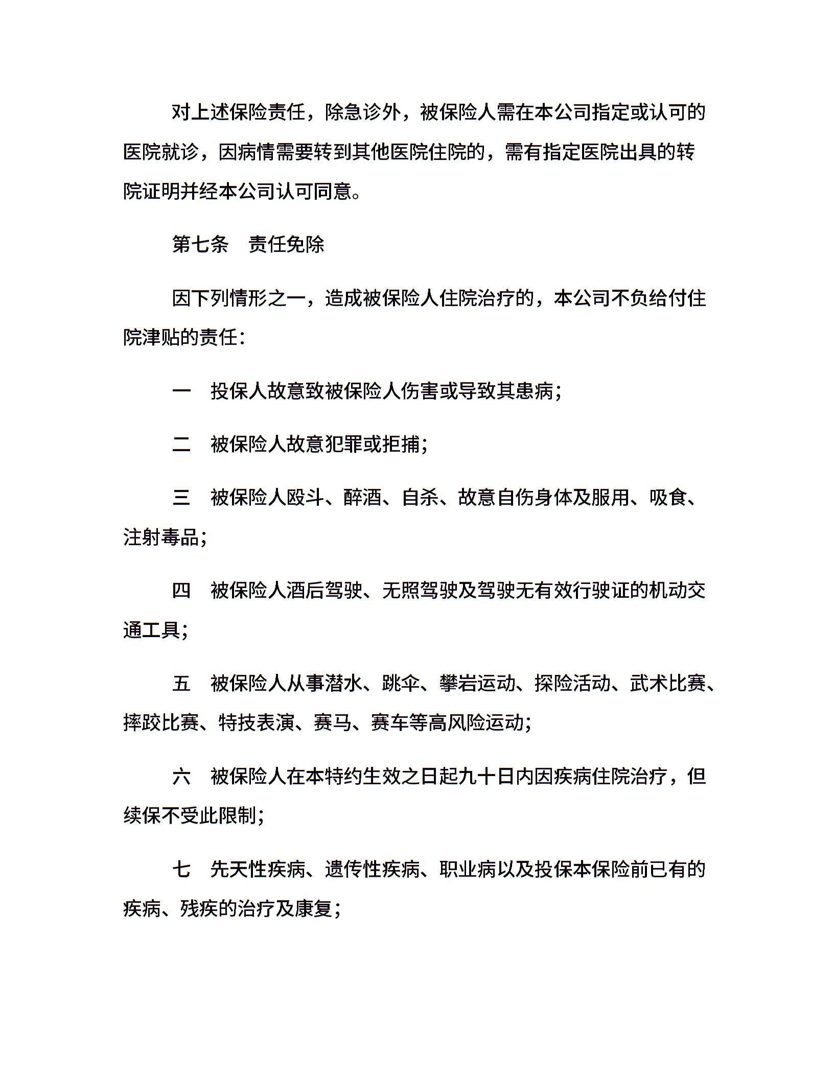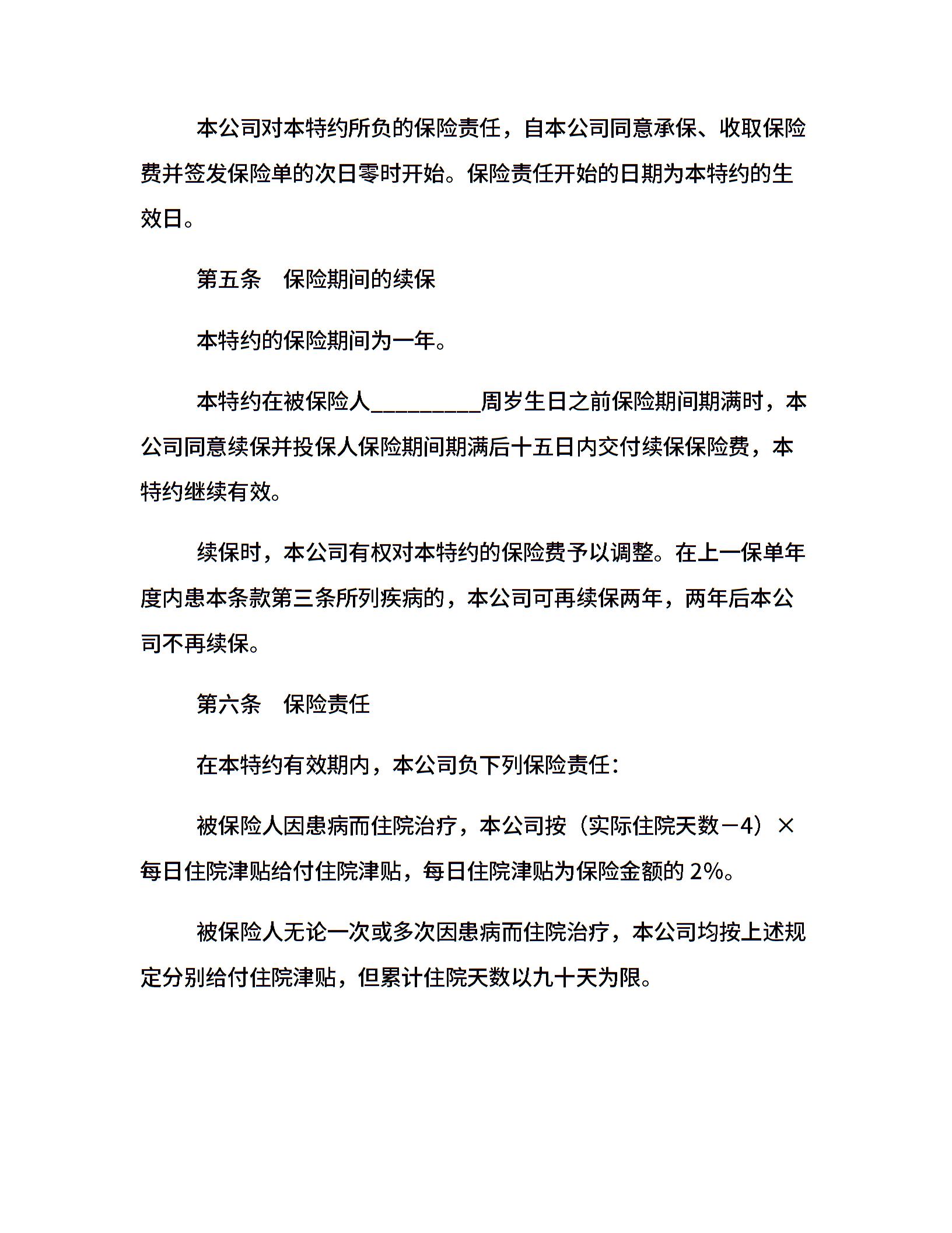 住院补贴医疗保险特约条款