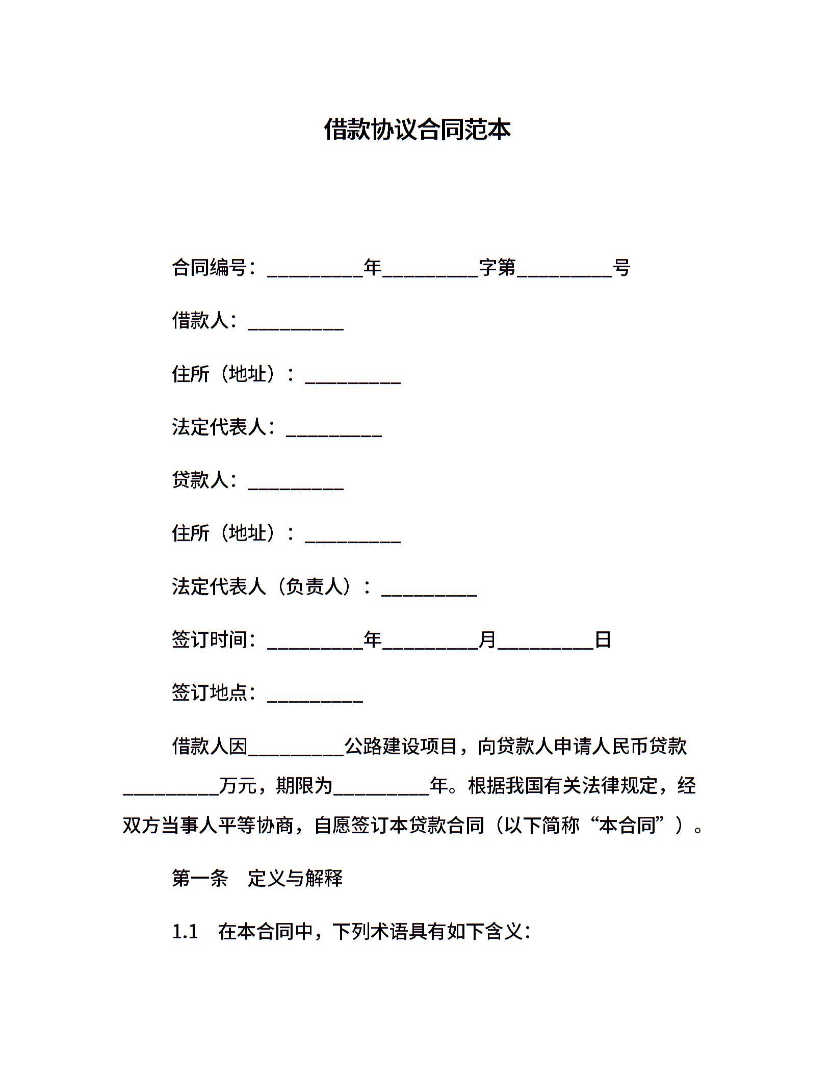 借款协议合同范本