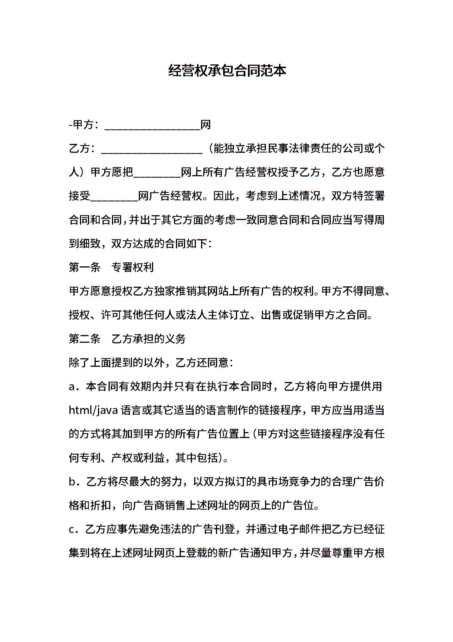经营权承包合同范本
