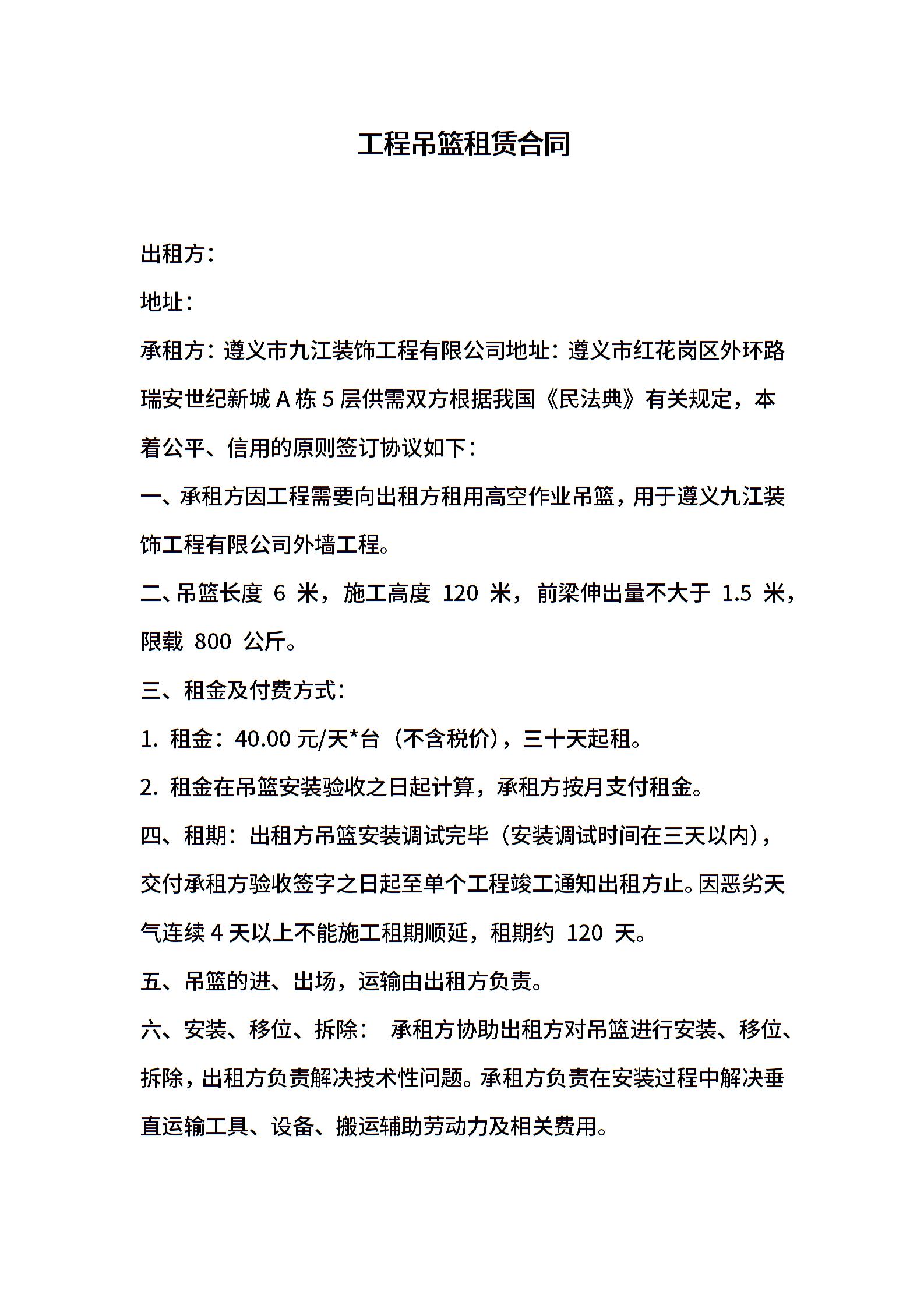 工程吊篮租赁合同
