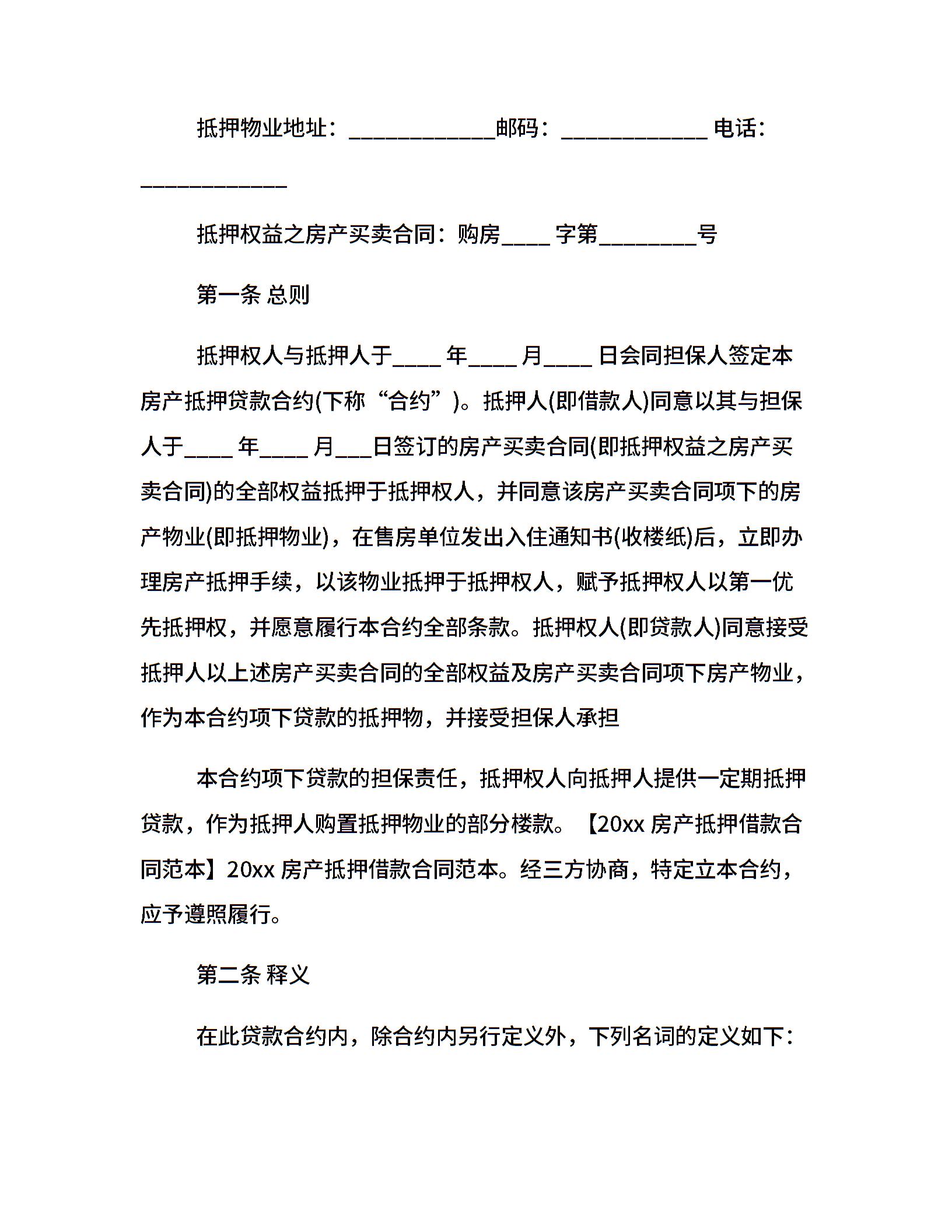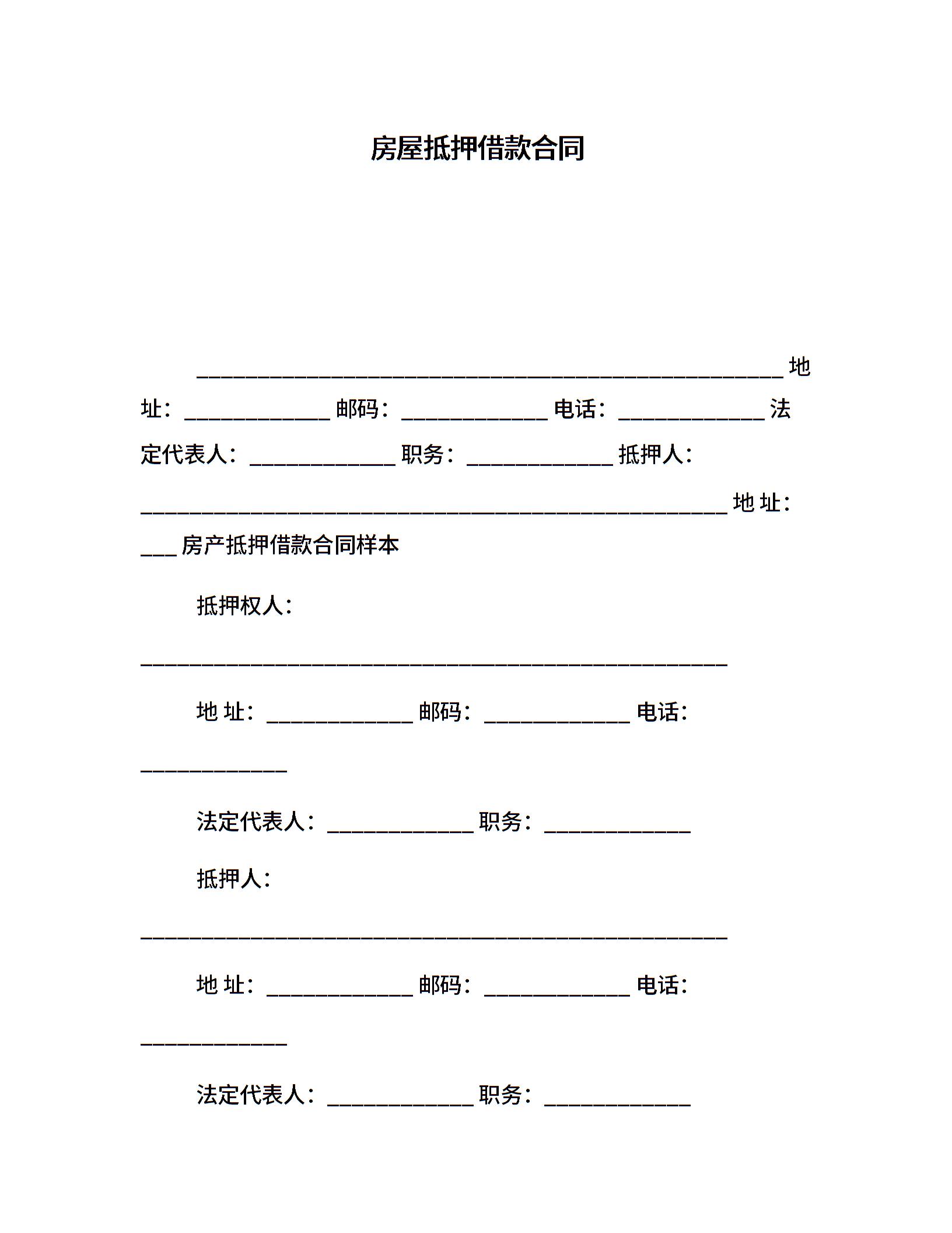 房屋抵押借款合同